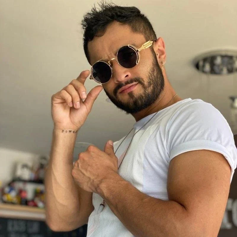 Round frame punk style PC sunglasses fashion trend hollow spring leg European and American sunglasses