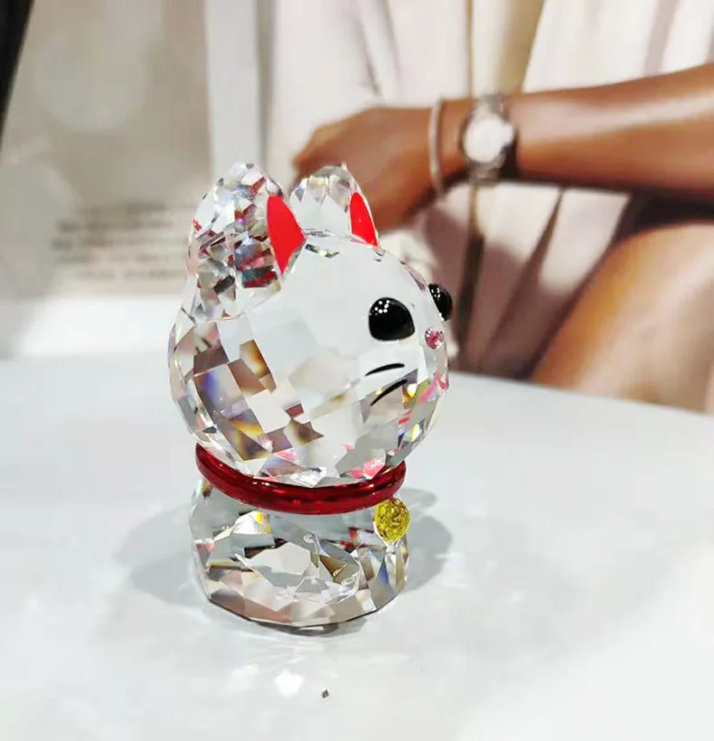 Crystal Lucky Cat Figurines Ornament Fortune Cat Paperweight Collection Craft Favorite Christmas Gift Home Decoration