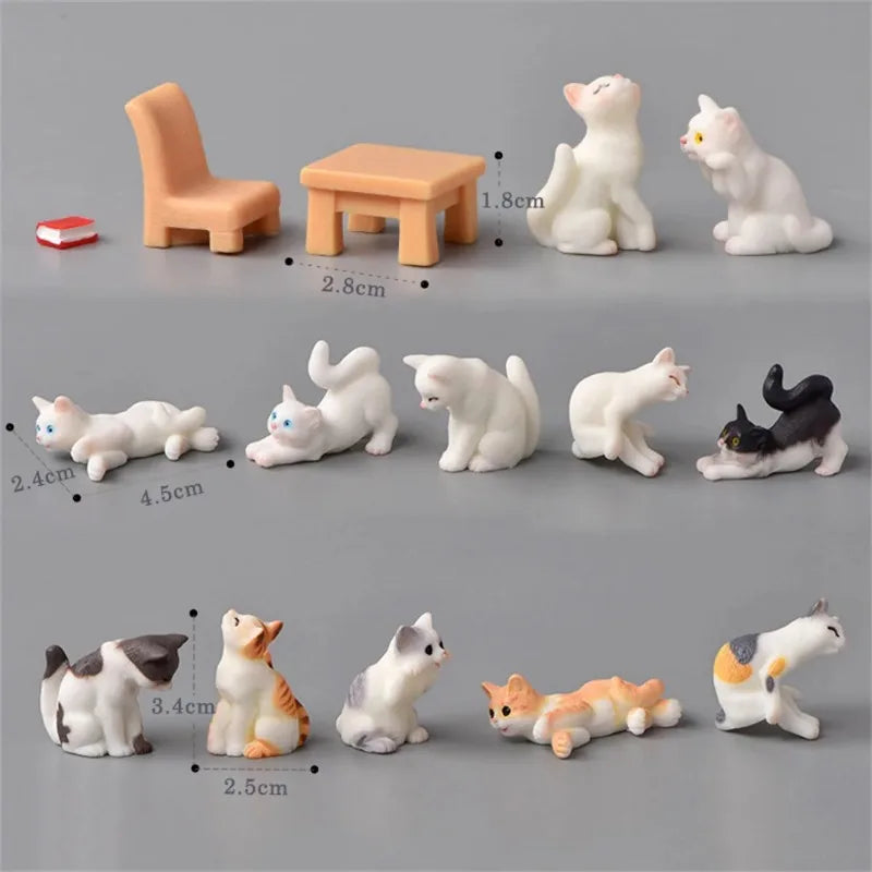 Cute Figurines Miniature Action Toy Cartoon Animal Cat Resin Ornament Micro Landscape Desk Accessories for Decoration Toy Home