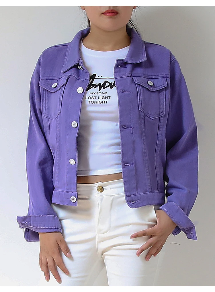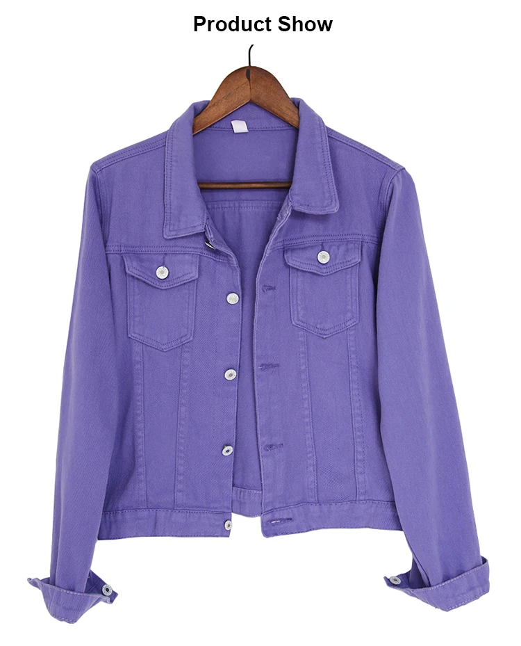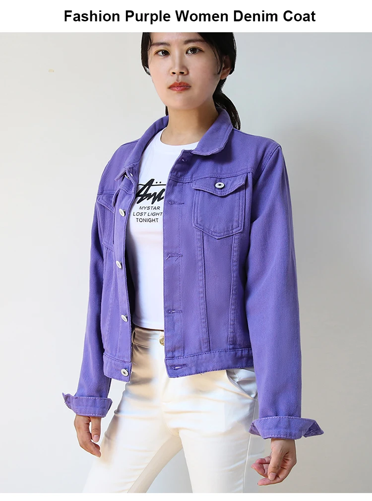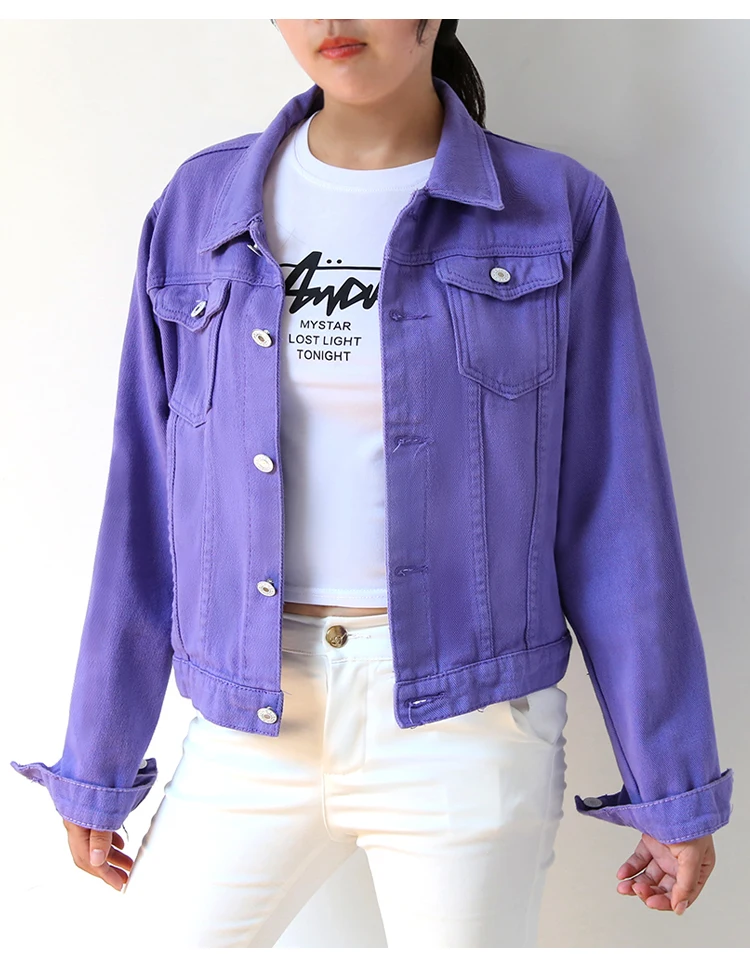 معطف جينز للنساء كاجوال Chaqueta Mujer Casaco Jaqueta Feminina جديد ربيع الخريف أرجواني قصير جينز جاكيتات معاطف ملابس خارجية