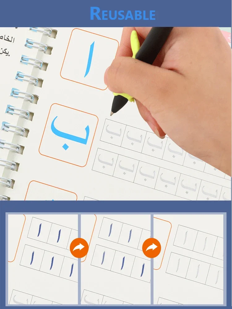 Early Learn Montessori Copybooks With Pen Kids Books Reusable Magical Calligraphy Free Wiping Arabic Alphabet