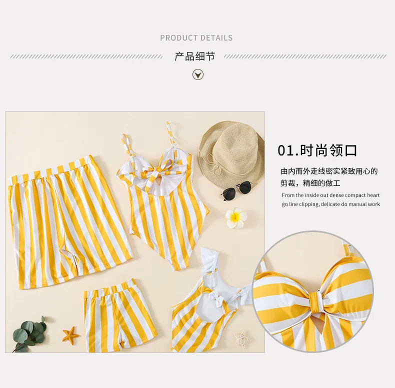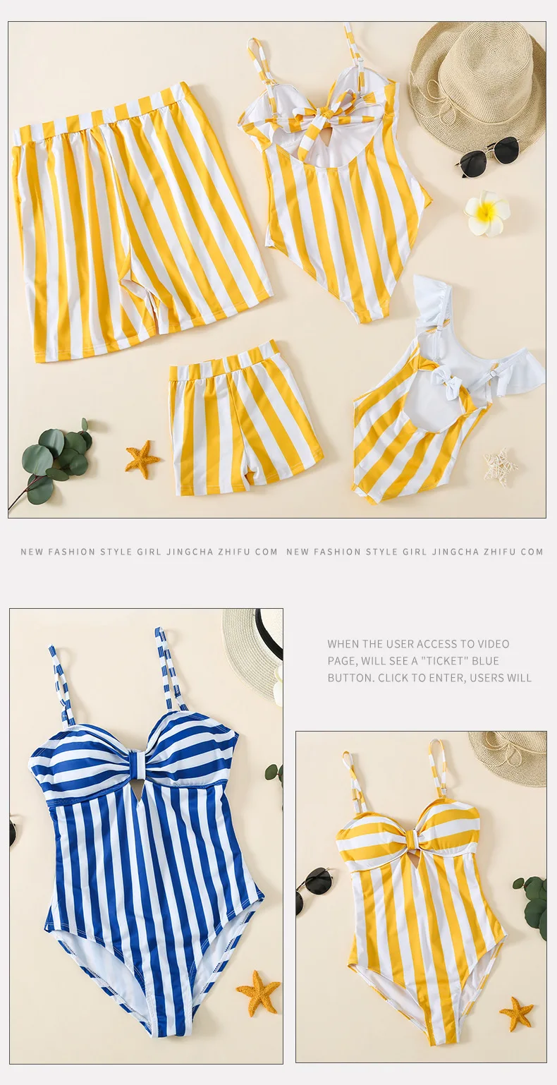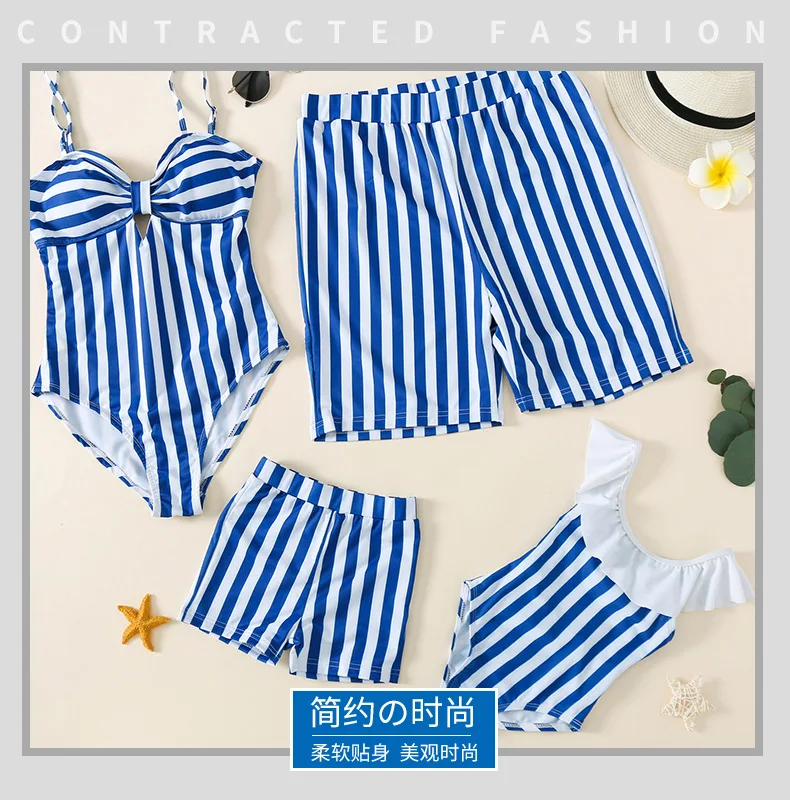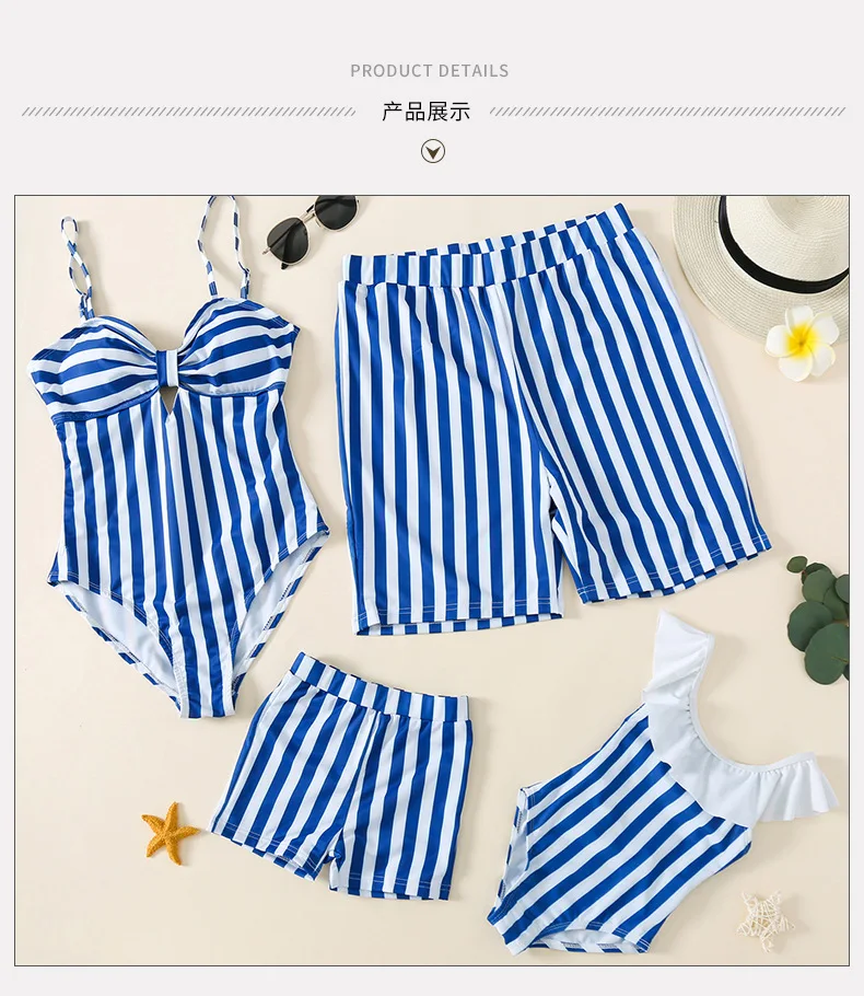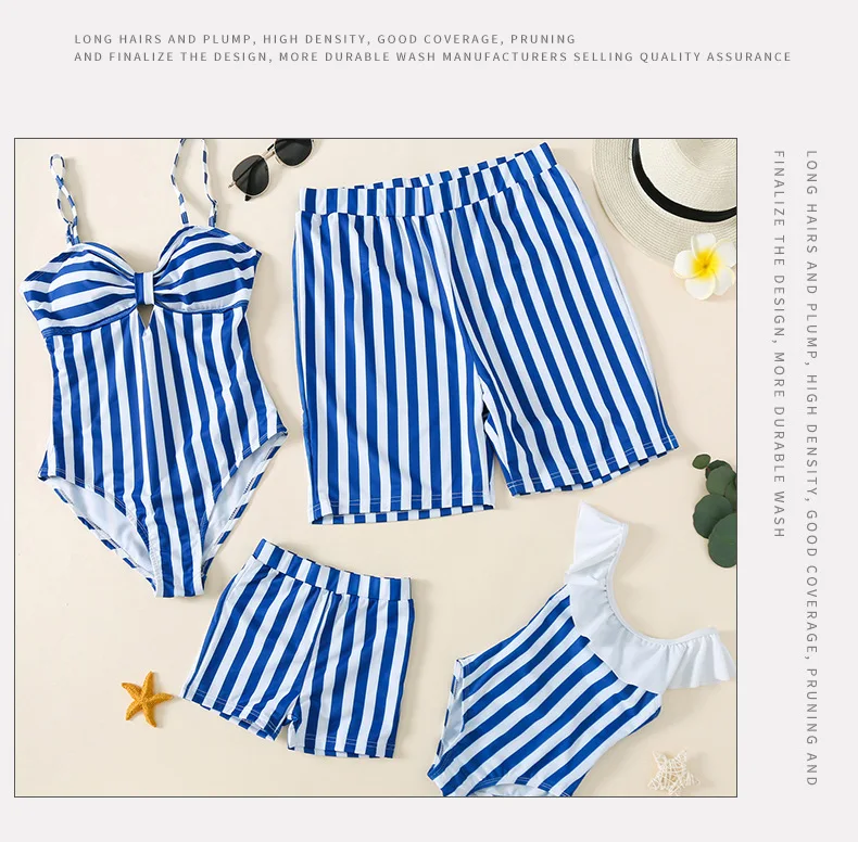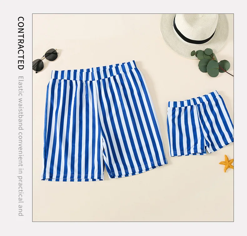 ملابس سباحة عائلية مخططة للأم والبنت بيكيني ملابس الحمل العائلية ملابس سباحة للأب والابن شورتات شاطئ