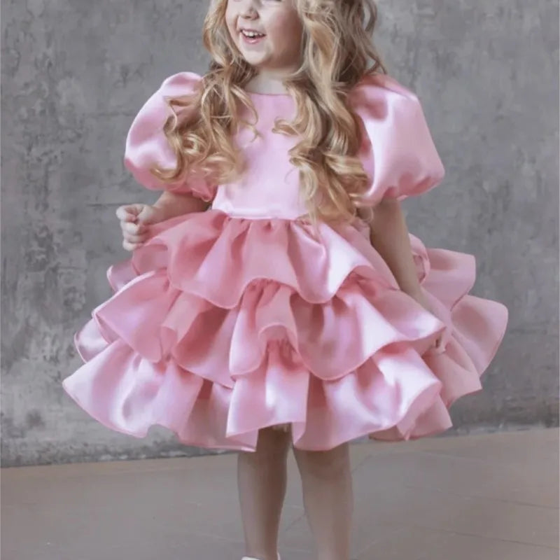 فستان الأميرة متعدد الطبقات للفتيات الصغيرات بأكمام منفوخة↓↓↓