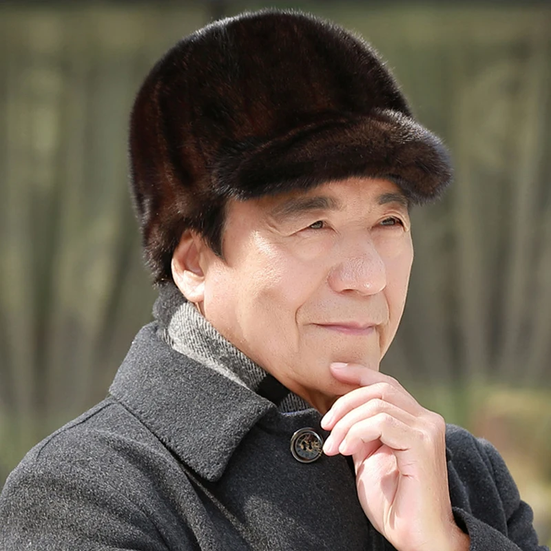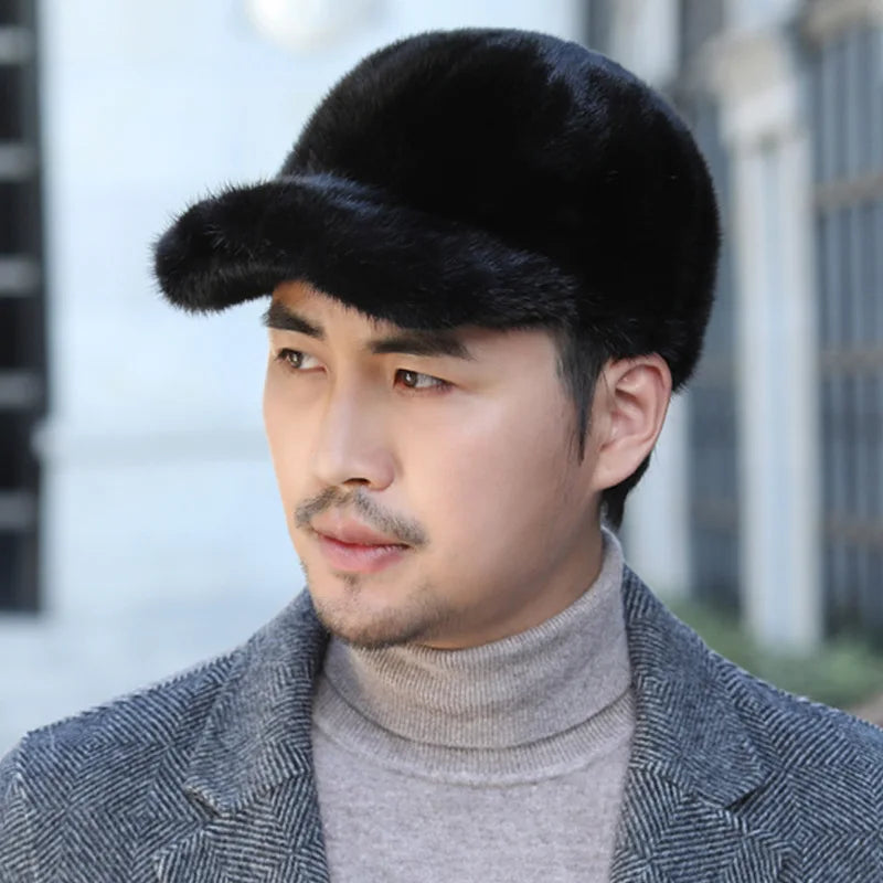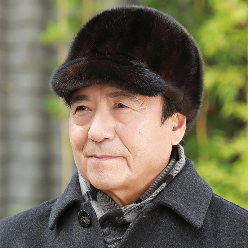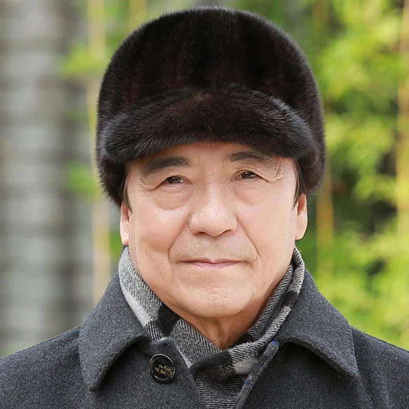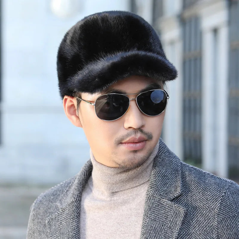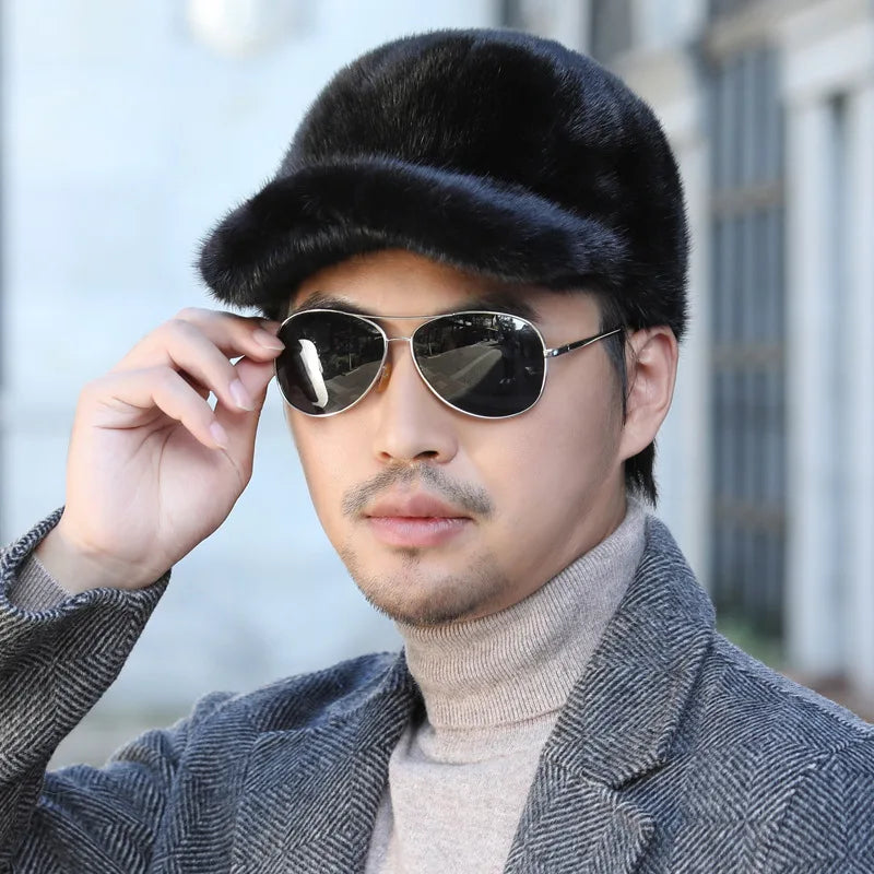 قبعات من فرو المنك الطبيعي الدافئ للرجال من فرو المنك الطبيعي 100% قبعات من فرو المنك الطبيعي عالية الجودة