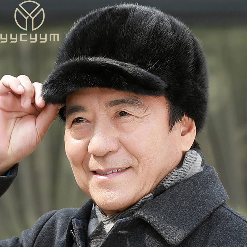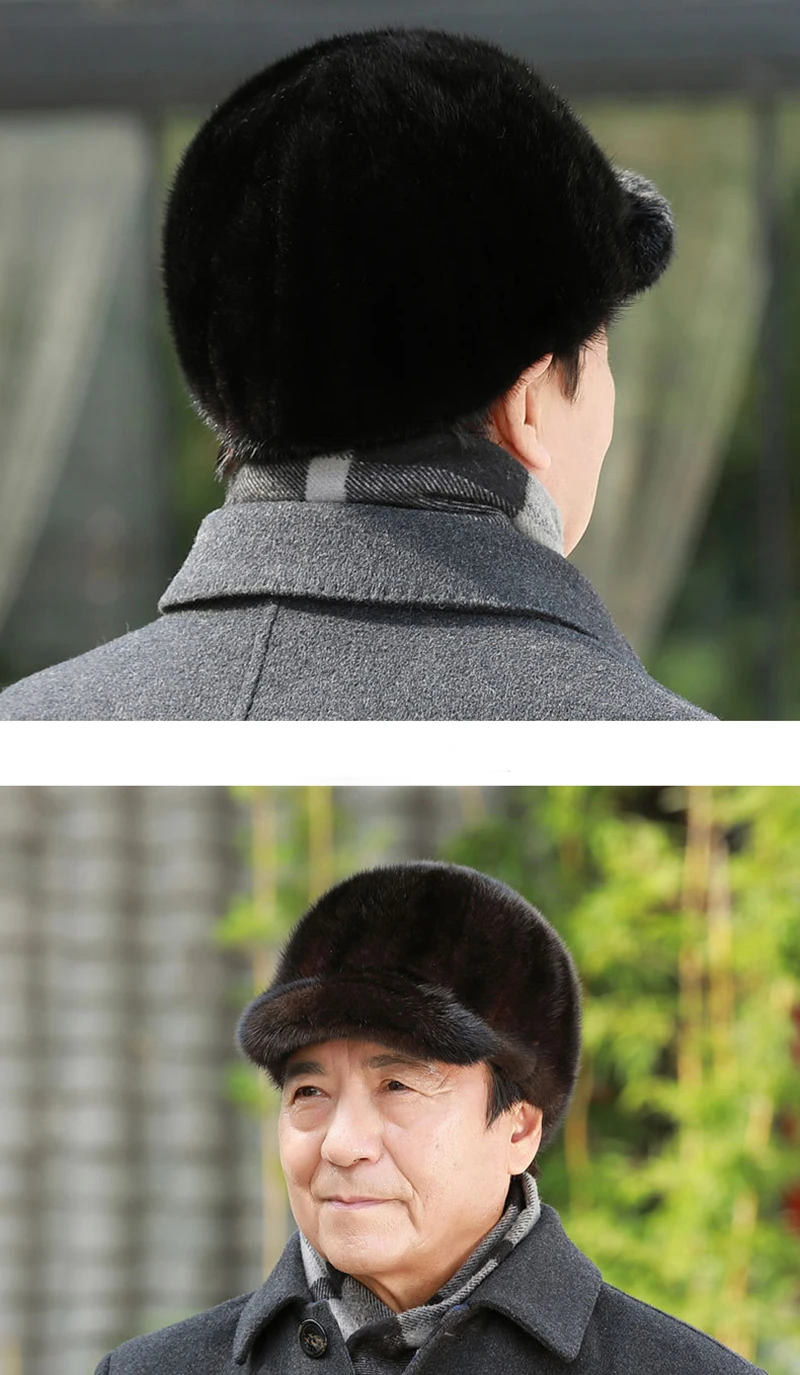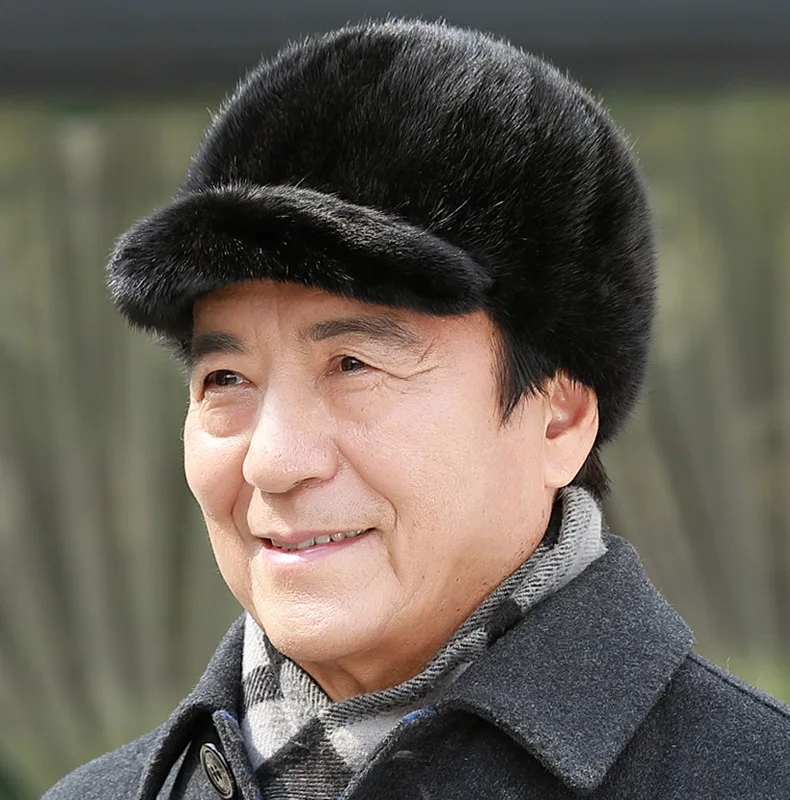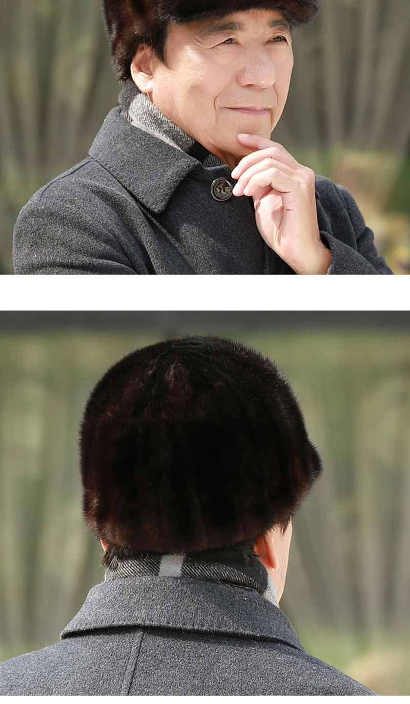قبعات من فرو المنك الطبيعي الدافئ للرجال من فرو المنك الطبيعي 100% قبعات من فرو المنك الطبيعي عالية الجودة