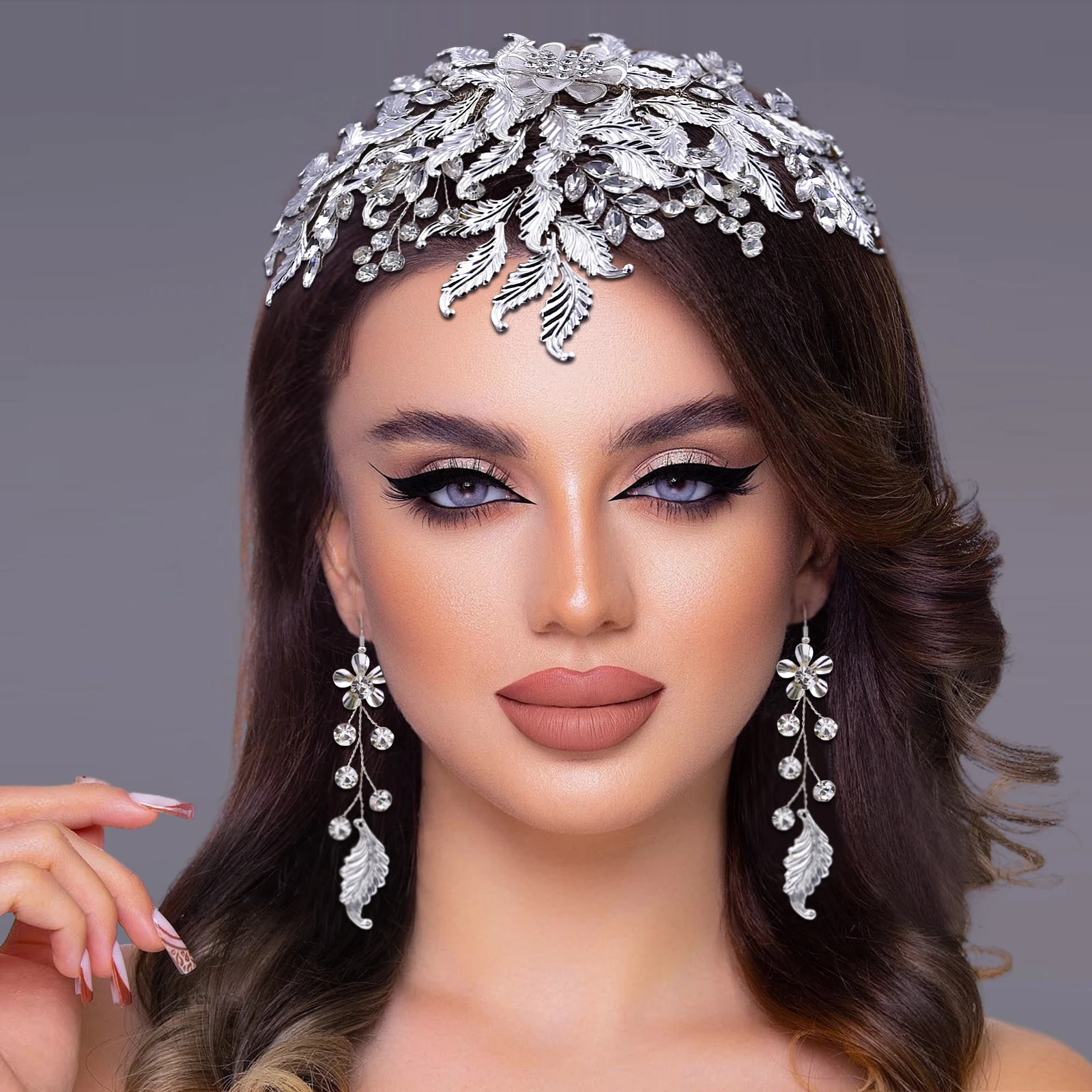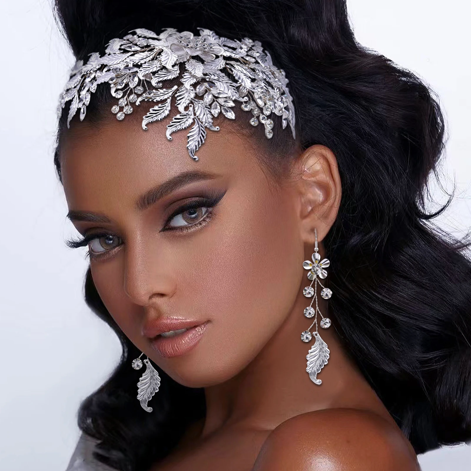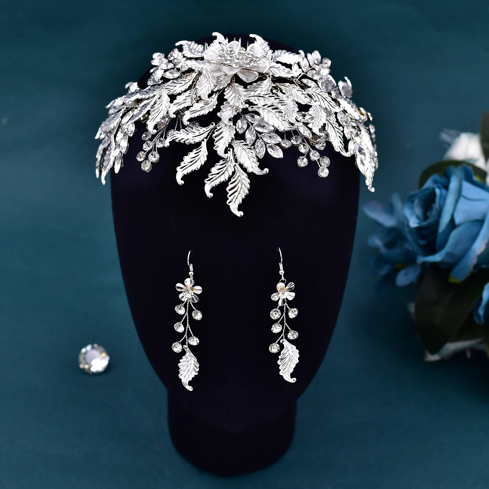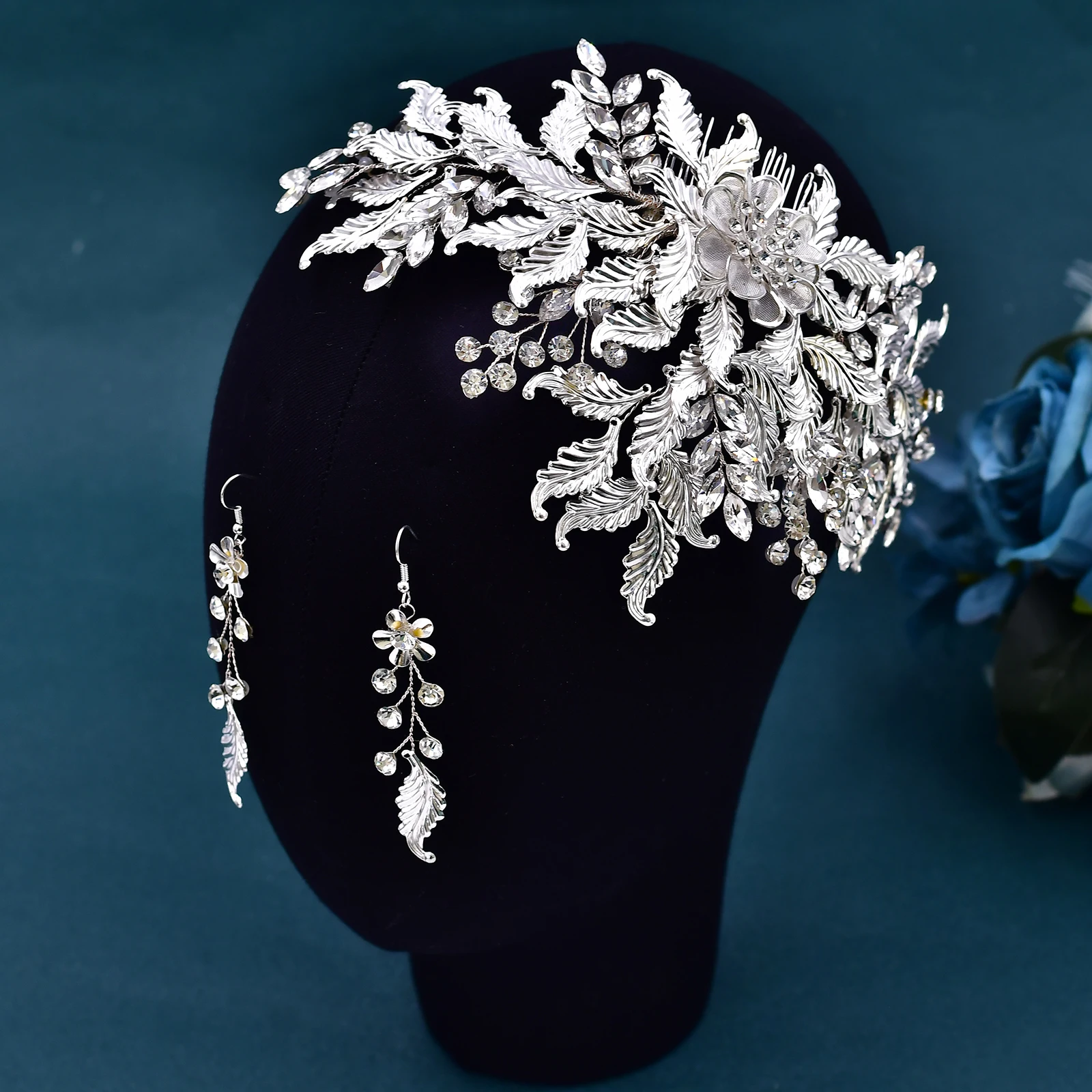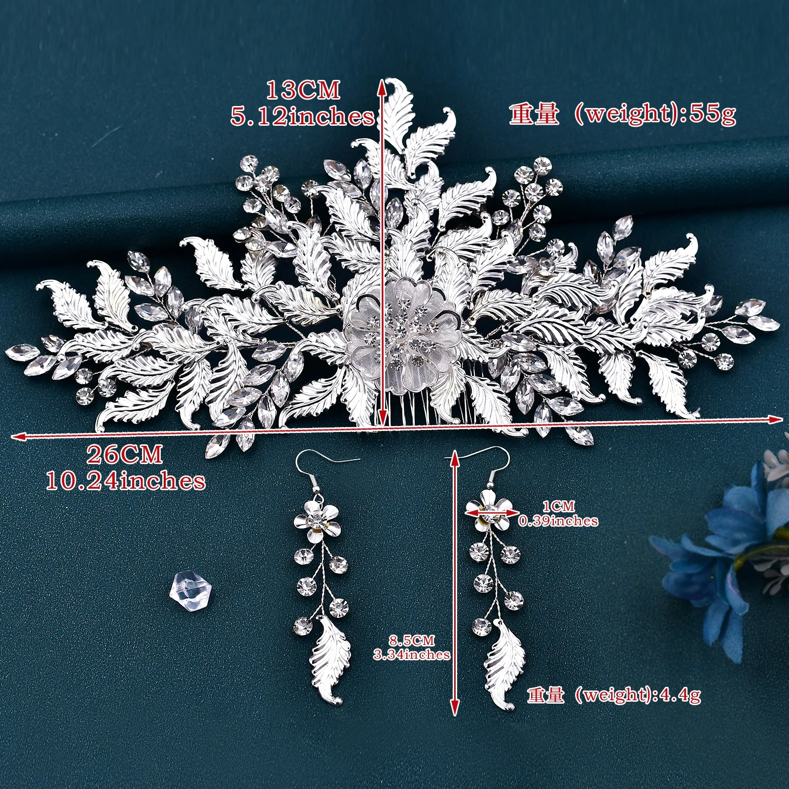 HP512 Alloy Leaves Wedding Comb Bridal Headdress Earring Bride Hair Accessories Woman Headwear Hair Ornaments Jewelry