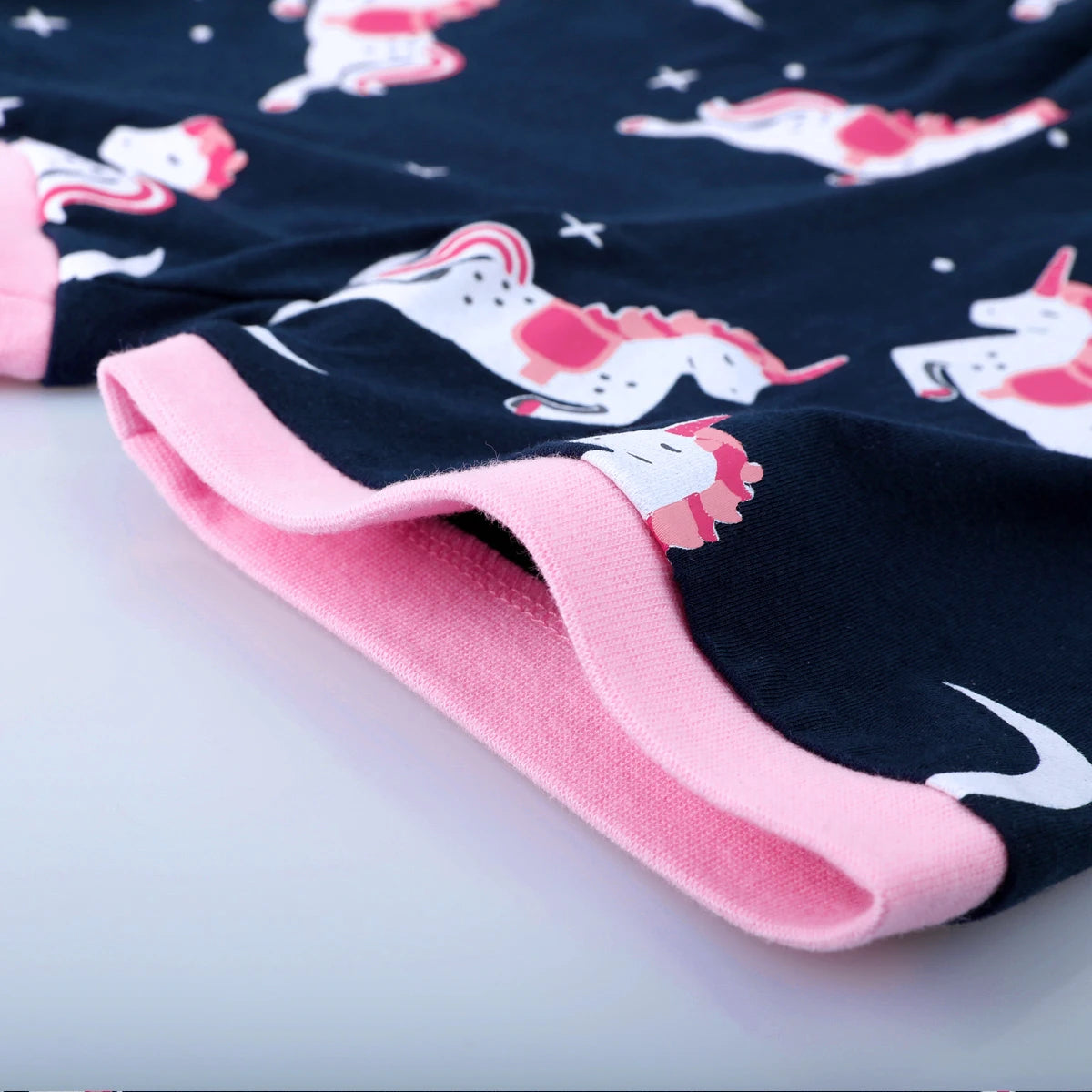 طقم بيجامات يونيكورن للأطفال البنات ملابس نوم صيفية قطنية للأطفال الصغار برسومات كرتونية هدية عيد ميلاد ملابس نوم بأكمام قصيرة من سن 3 إلى 10 سنوات
