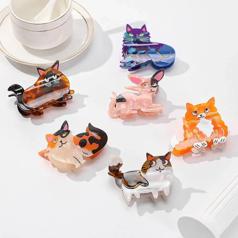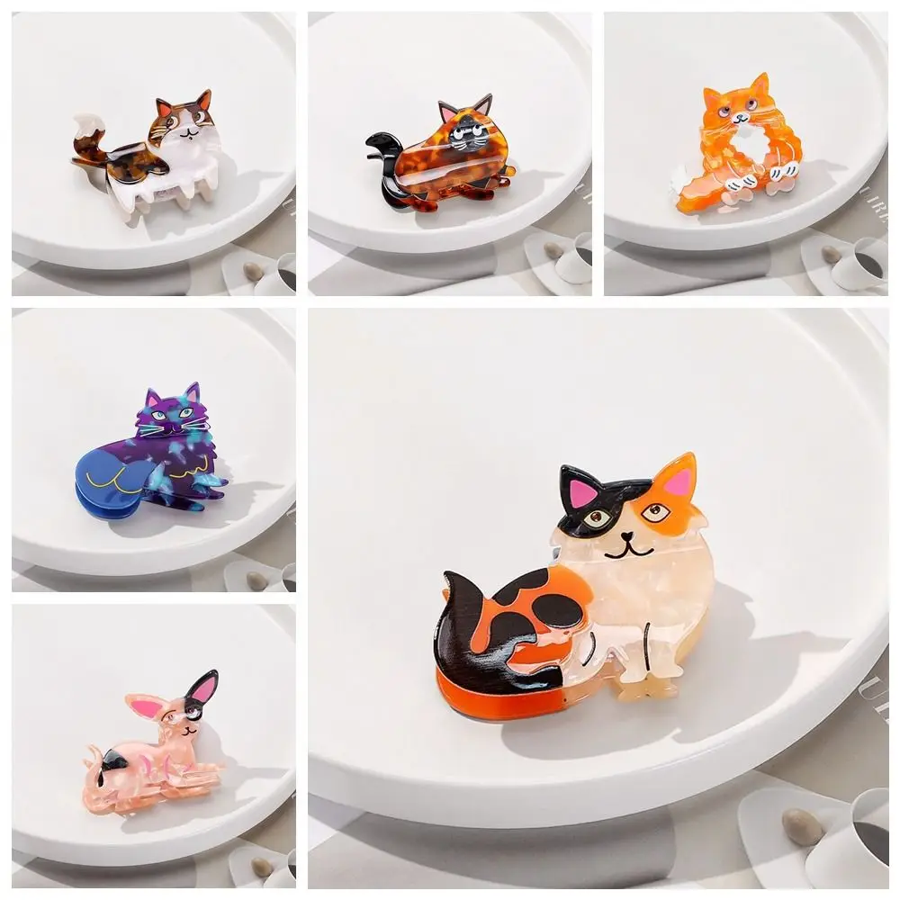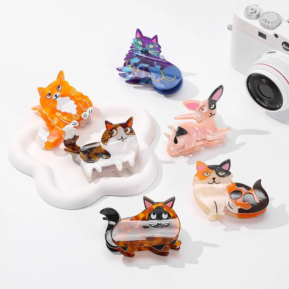 Korean Style Acetic Acid Animal Hair Claw Kitten Kawaii Retro Cat Crab Clip Headwear Creative Cartoon Shark Clip
