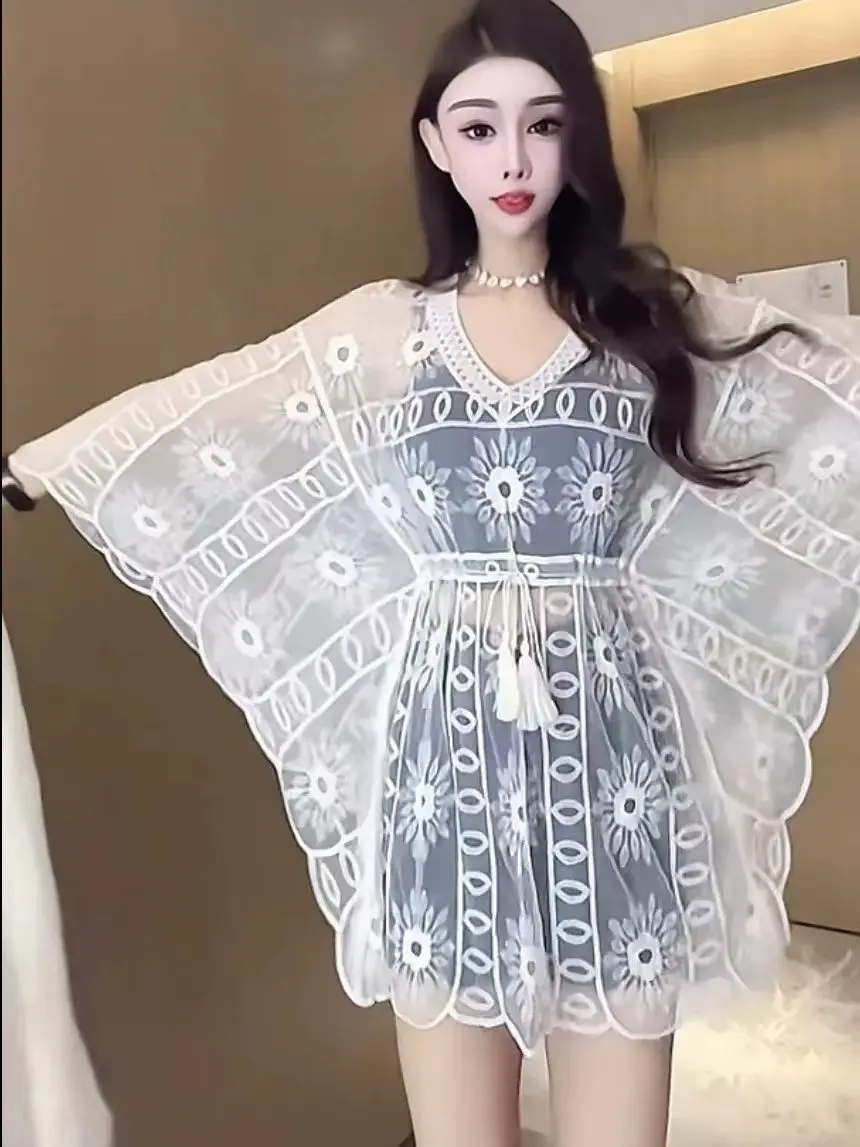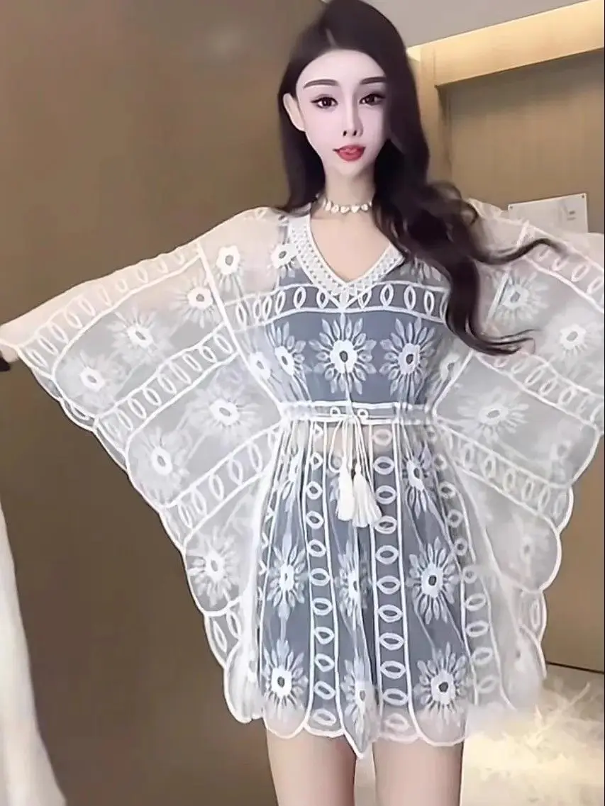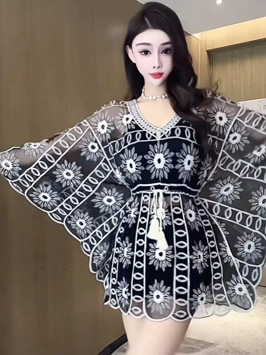 Ladies Blouse V-neck Bat Sleeve Shirt Summer New Loose Plus Size Cloak Waist Sunscreen Shirt Fashion Tops Clothing