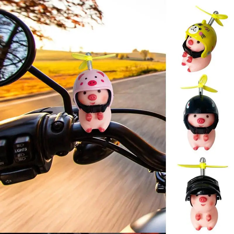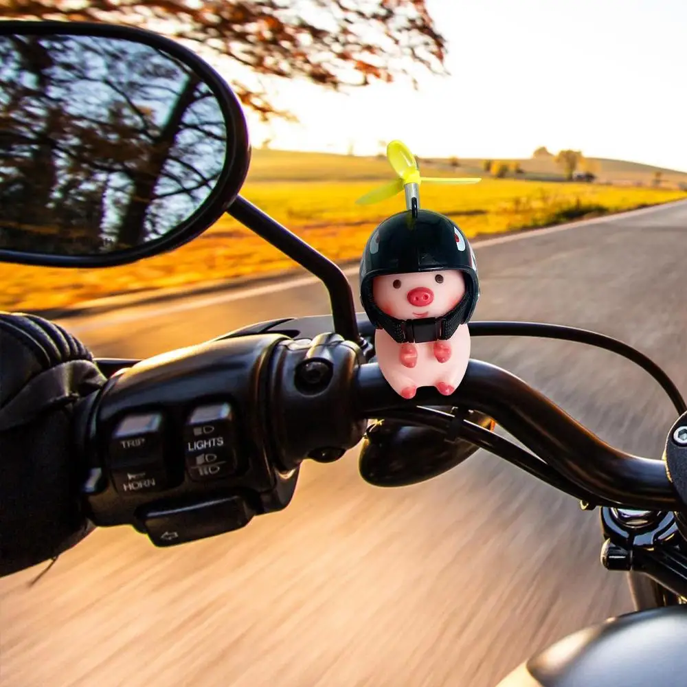 Lovely Animal Figures With Propeller Helmets Cute Swine Handlebar Toy Piglet Motorcycle Handlebar Ornaments Motorcycle Supplies