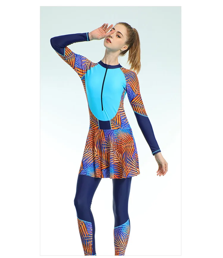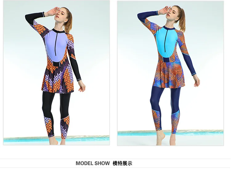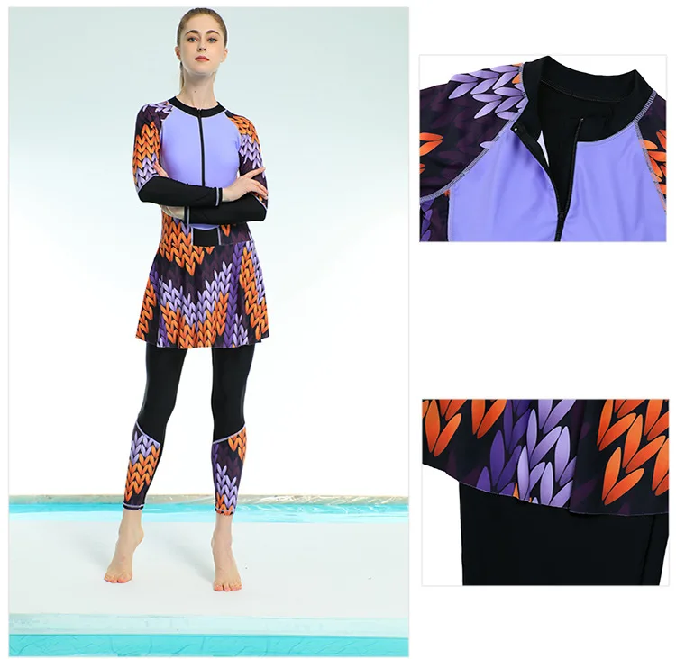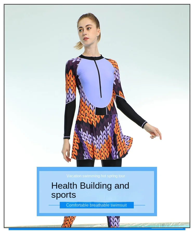 Muslim Sport Wear Sets for Woman 2022 New Muslim Swimwear Long Conservative Floral Printed Burkini for Veiled Women Borkini