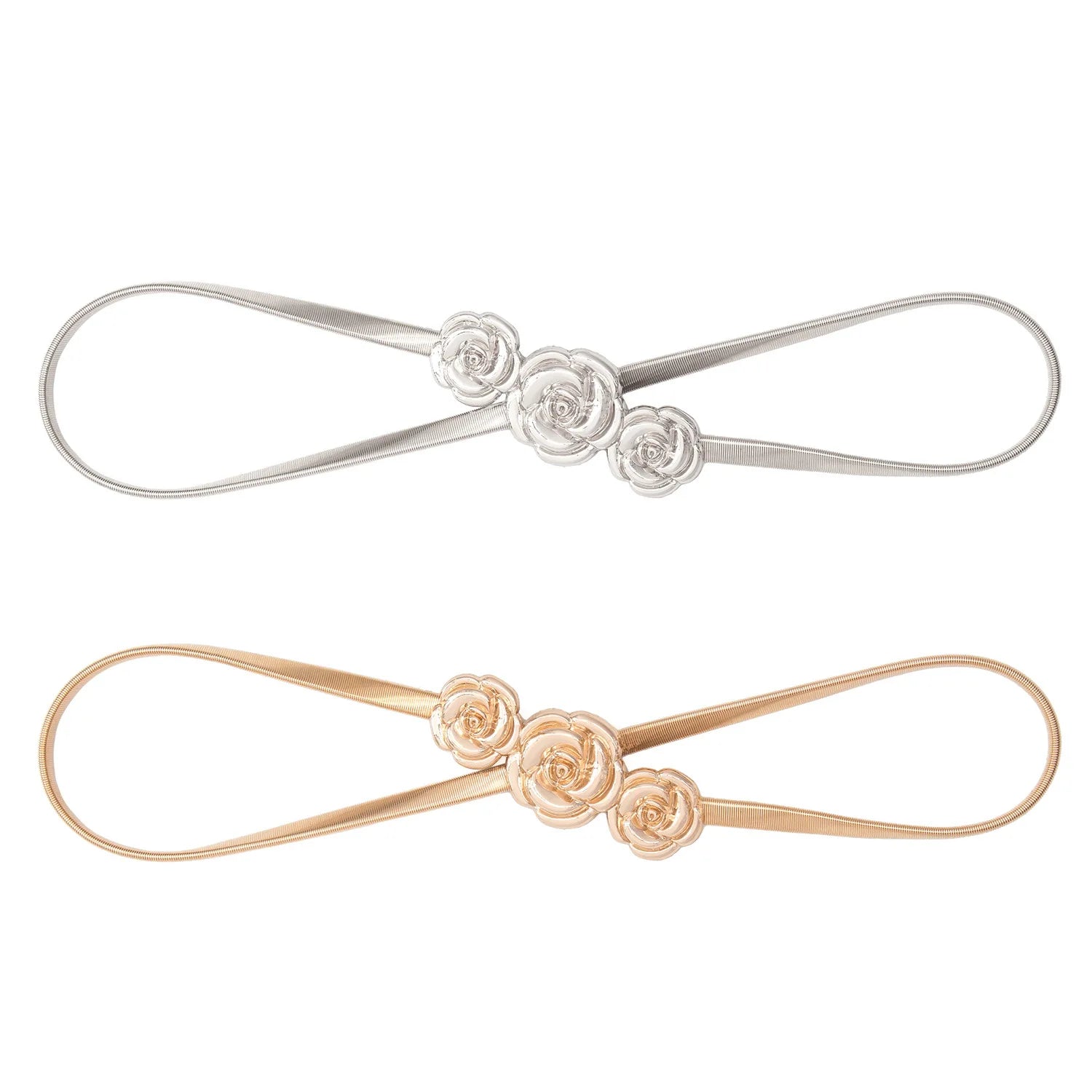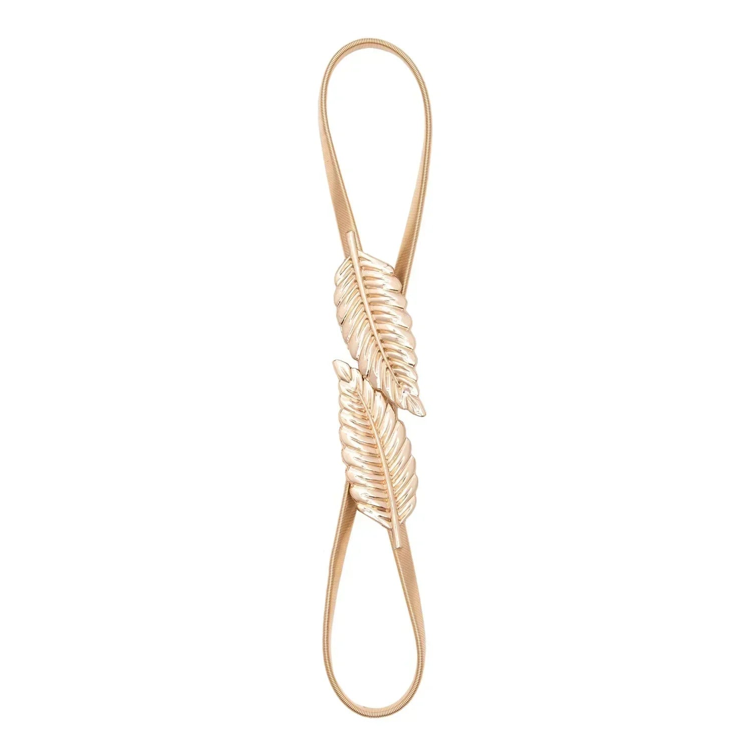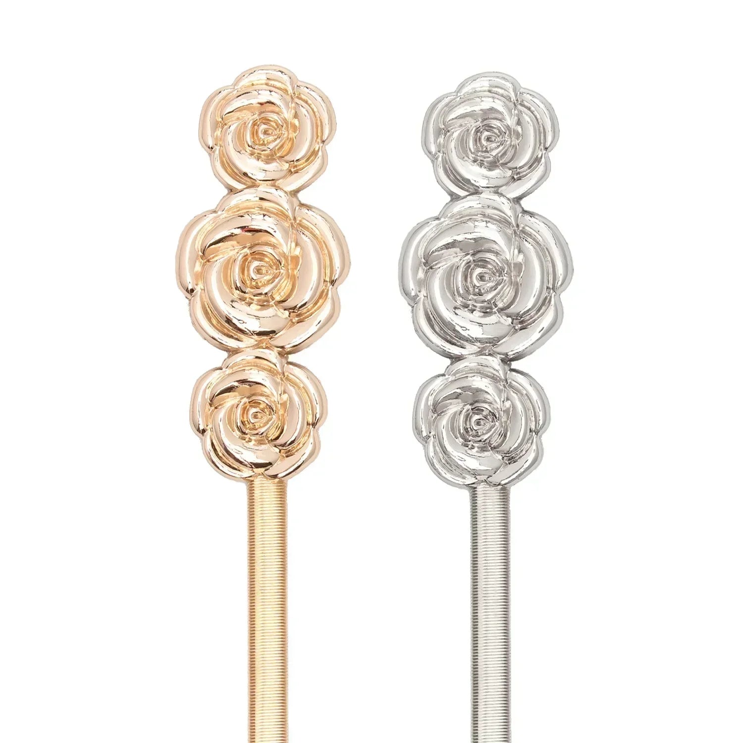 New Elastic Gold SIilver Chain Belt Women Metal Waistband Leaf Rose Stick Stretch Belt Dress Skirt Shirt Coat Clothes Decoration