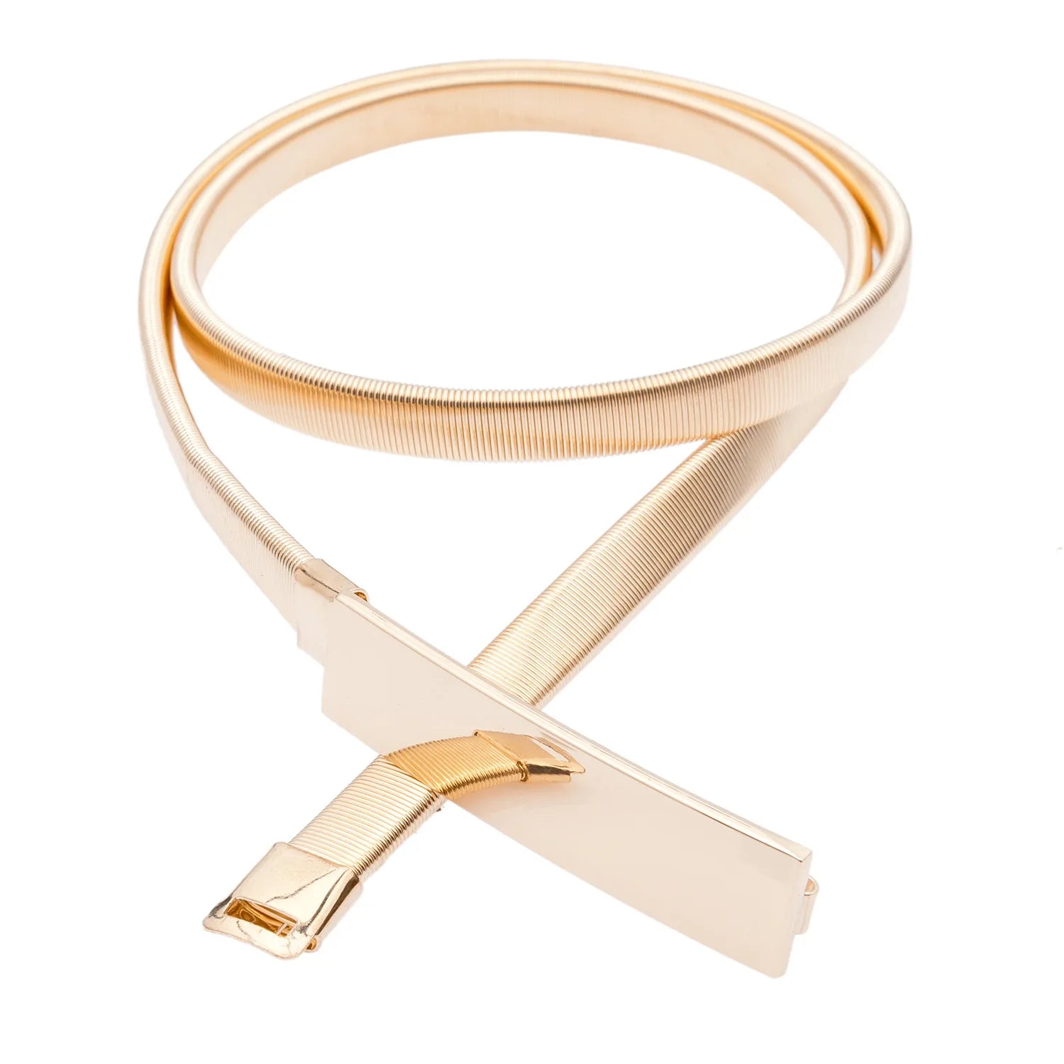 New Elastic Gold SIilver Chain Belt Women Metal Waistband Leaf Rose Stick Stretch Belt Dress Skirt Shirt Coat Clothes accessories