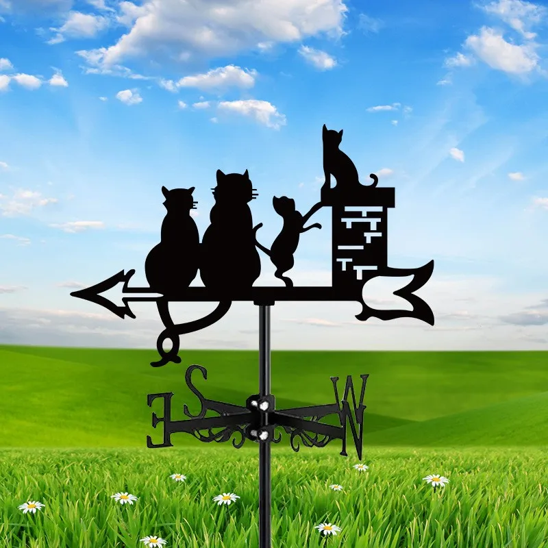 New Fashion Vane, Cat Family, Cat With Mouse, Metal Rain Outdoor Decoration, Garden Roof Art, Farm Railing Festival Props;
