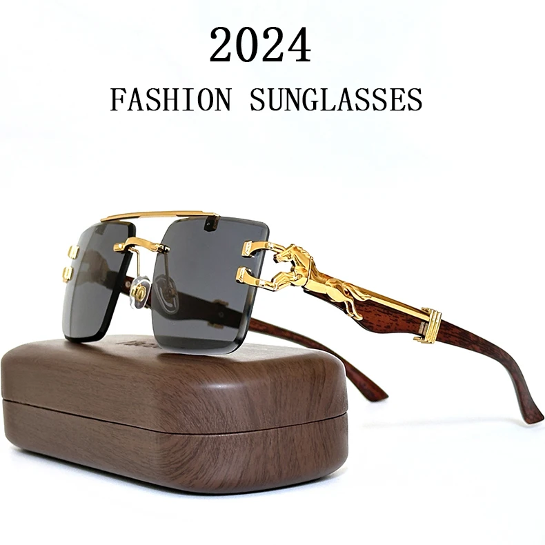 New In Sunglasses For Men Wooden Rimless Sunglasses Women Vintage Square Fashion Glasses Luxe Gafas De Sol Hombre Zonnebril Sun