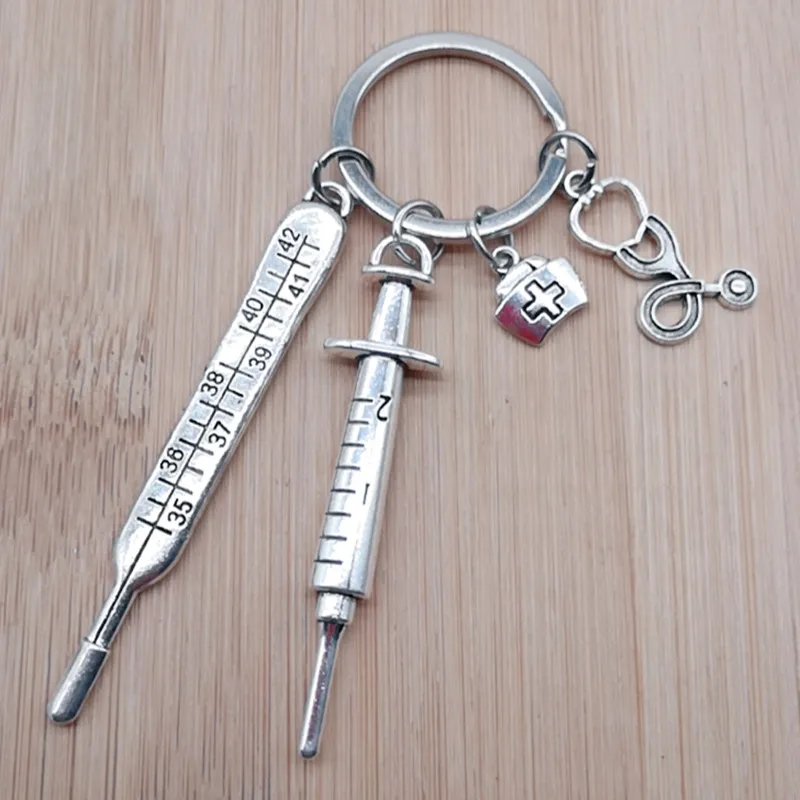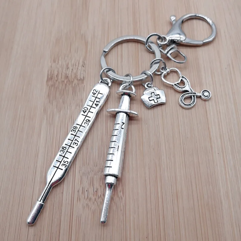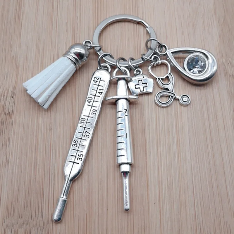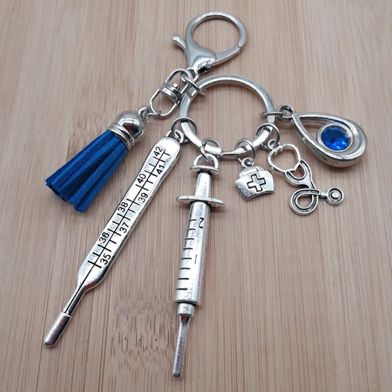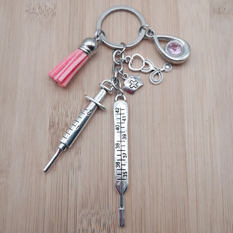 New Nurse Medical Box Medical Keychain Needle Syringe Stethoscope Tassel Cute Keychain Jewelry Gift