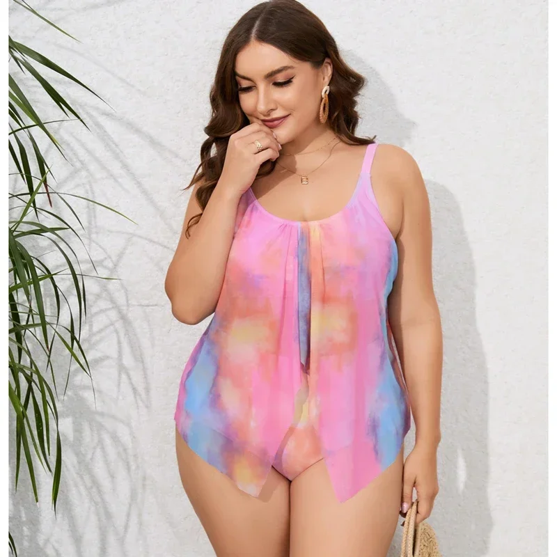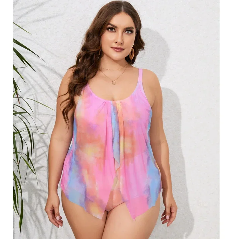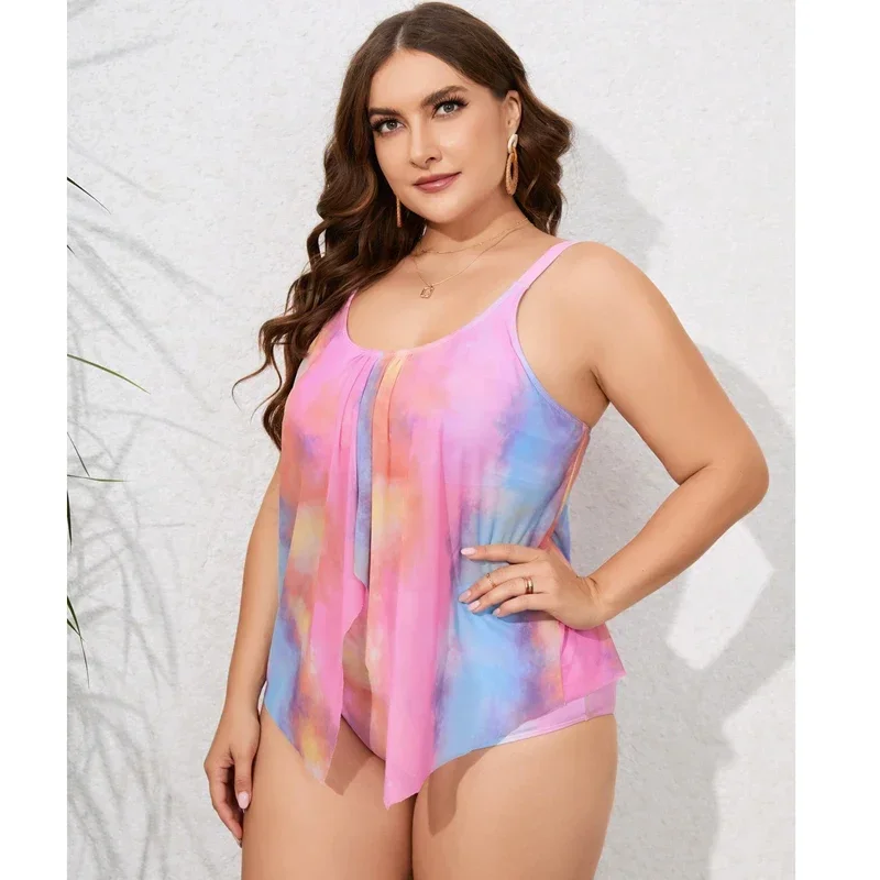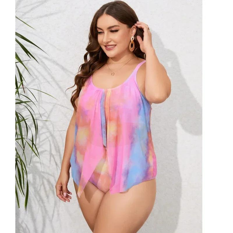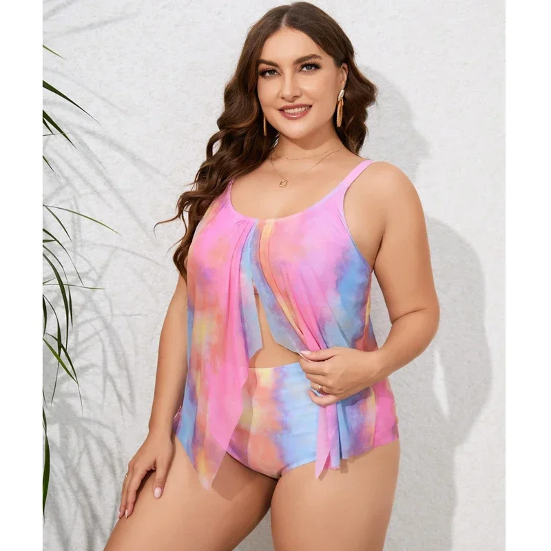 New Plus Size 8XL10XL Cover Up Swimwear Women Print Tankini Set Two Pieces Bikini Mujer Bathing Suit Beachwear Swimsuits