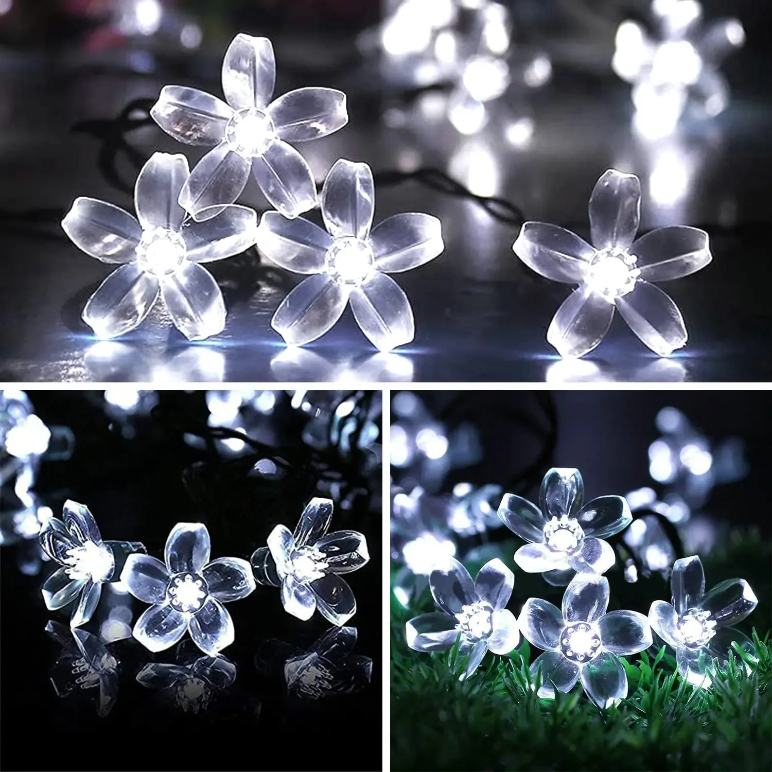 Perfect Indoor & Outdoor Decor-- Solar flower string lights,realistic and vivid soft plastic crystal peach blossom LED lights, it emits colorful light, bringing you dreamlike beauty, perfect match with Christmas tree and garden fence, fantastic decoration for holiday, garden, patio, yard, wedding, party, tent, gazebo, etc.