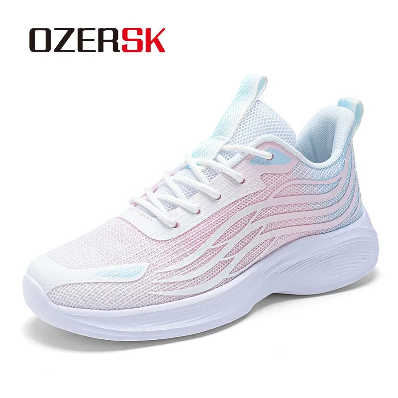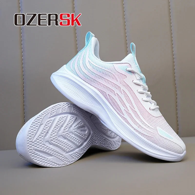 حذاء نسائي عصري من OZERSK صيفي شبكي خفيف الوزن مريح قابل للتنفس بنعل EVA برباط غير قابل للانزلاق حذاء كاجوال مقاس 35-41