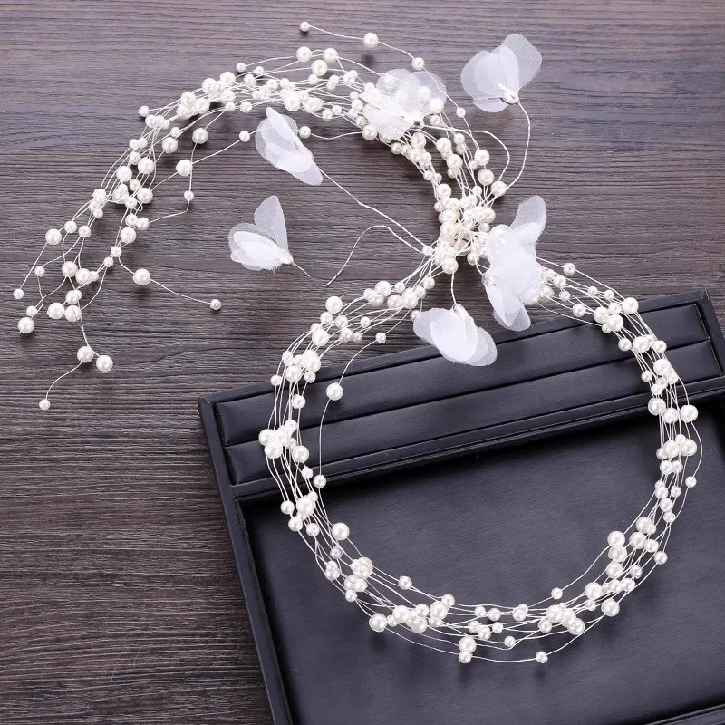 Pearl Flower Bow Headband Tiara Party Wedding Headband Hairband Bridal Wedding Hair Accessories Jewelry Headband Tiara