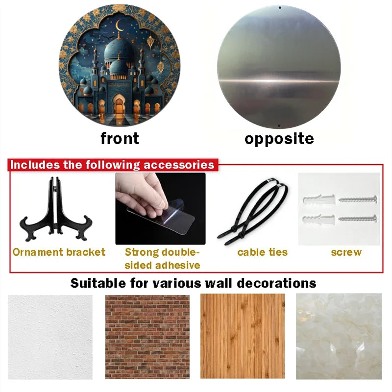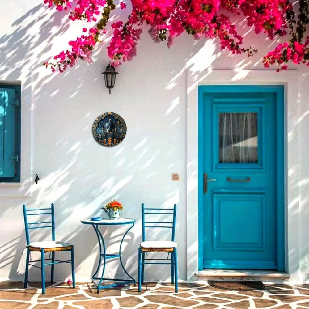Round Aluminum Metal Eid Mubarak Sign, Ramadan and Umran Decorations, Room, Home, Garden, Perfect Housewarming, Holiday Gift