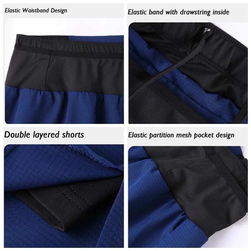 (S-4XL) شورت رياضي للجري الماراثوني سريع الجفاف بطبقتين للرجال والنساء والمراهقين مع جيب بسحاب وشورت تدريب لياقة بدنية بدون مسارات