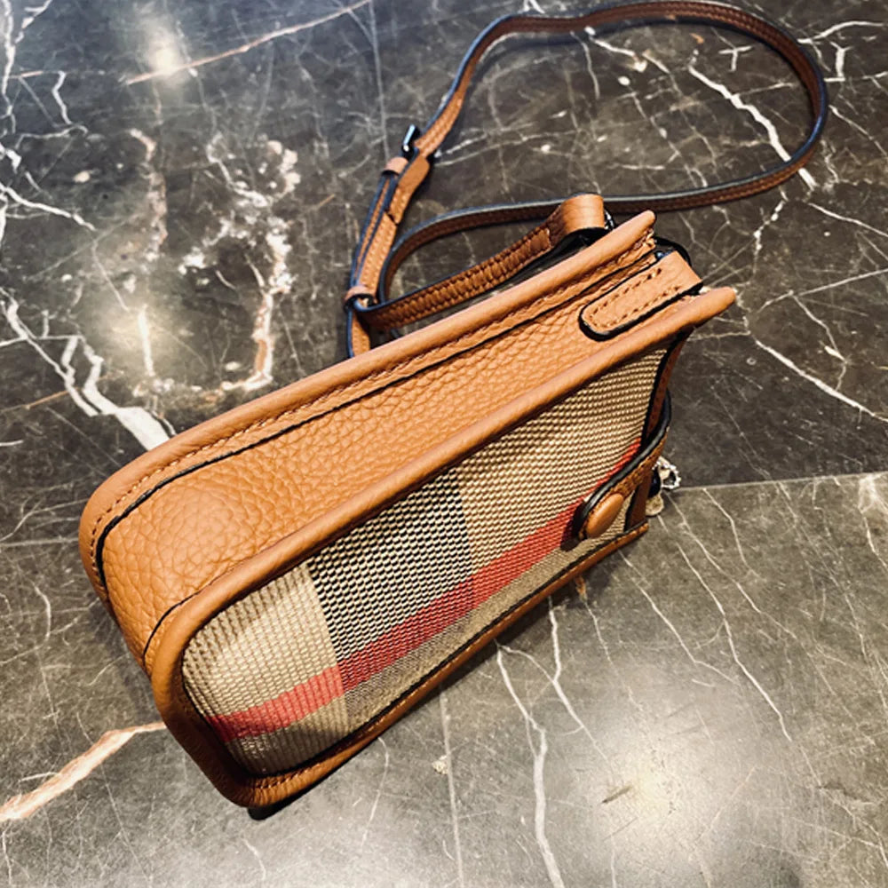 حقيبة نسائية صغيرة فاخرة مخططة من القماش والجلد لحمل الهاتف المحمول وحقيبة كروس بودي صغيرة كلاسيكية للنساء وحقيبة يد