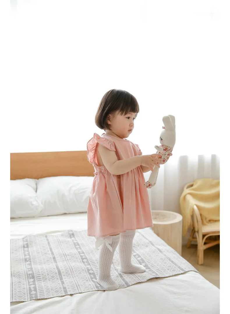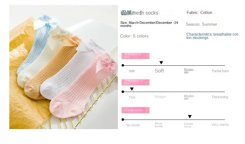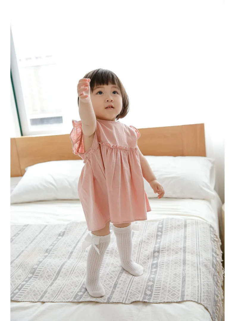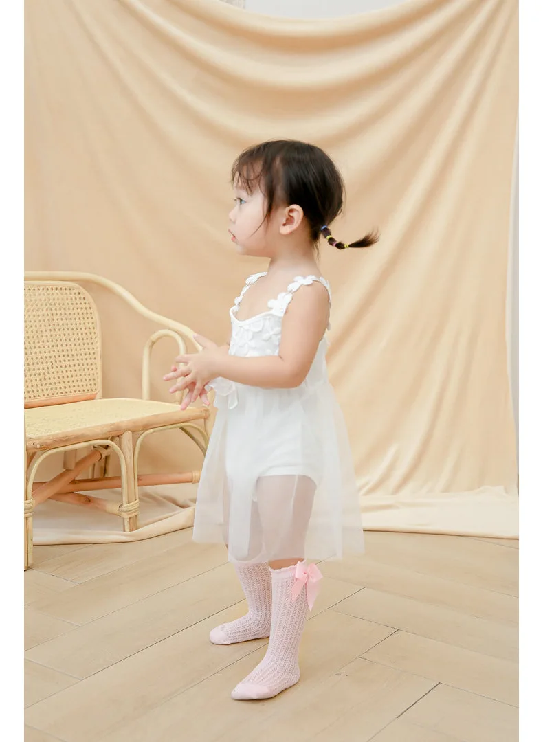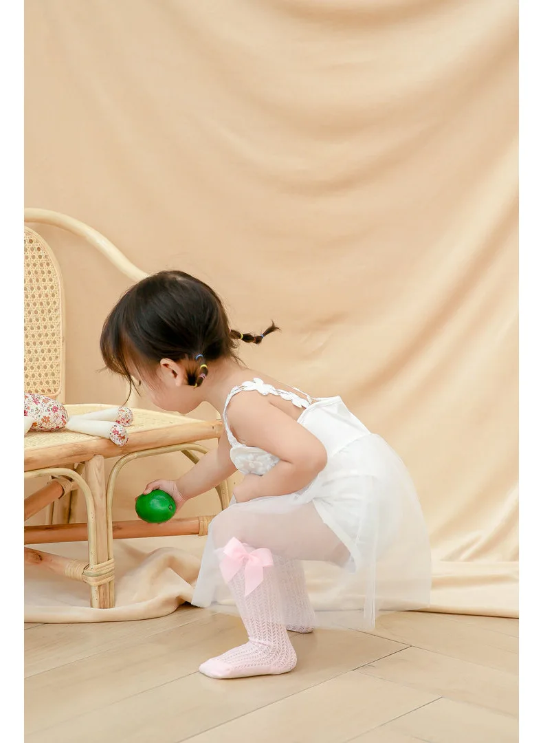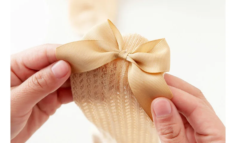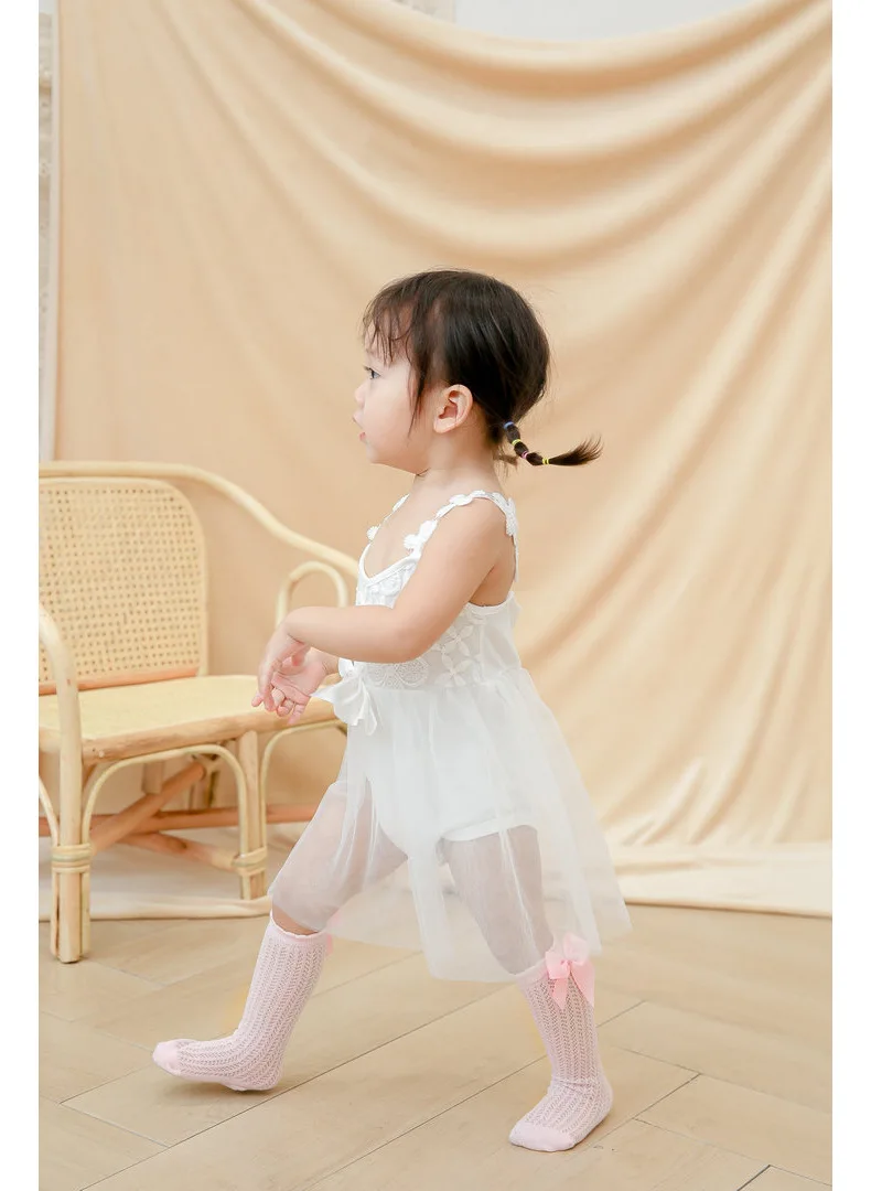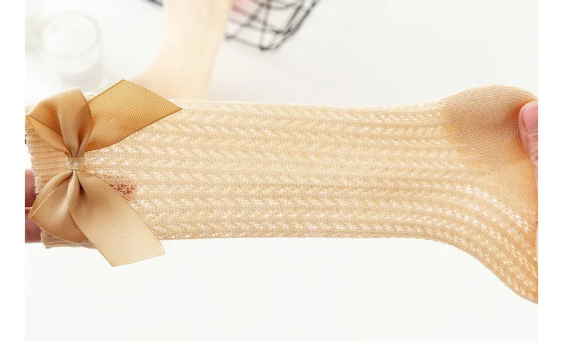 جوارب صيفية للأطفال مصنوعة من شبكة رفيعة مقاومة للبعوض وجوارب طويلة حتى الركبة بفيونكة كبيرة وإكسسوارات ملابس فضفاضة للأطفال حديثي الولادة