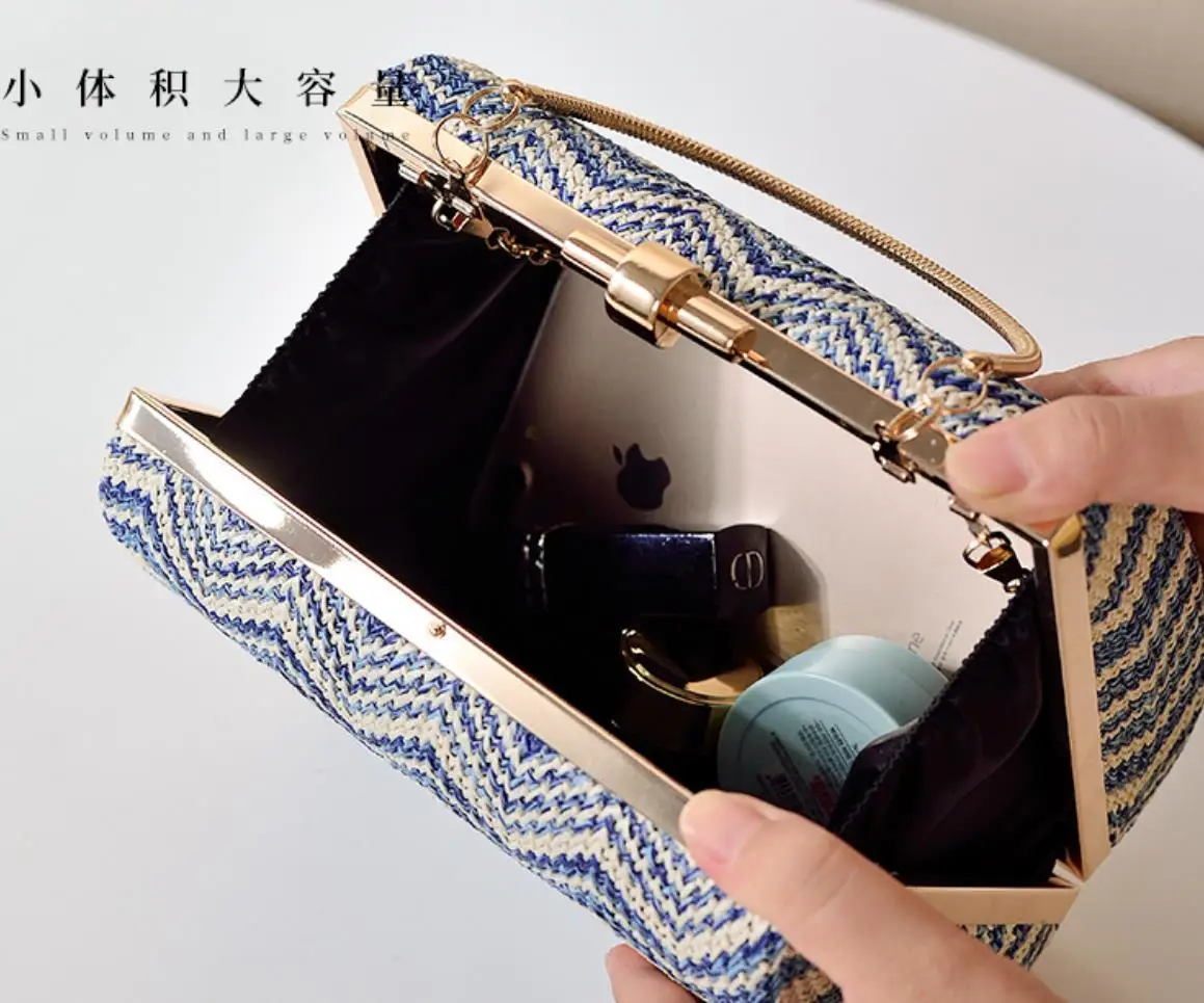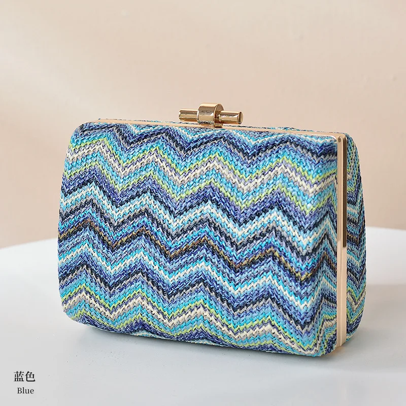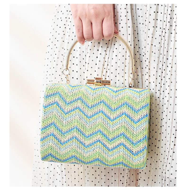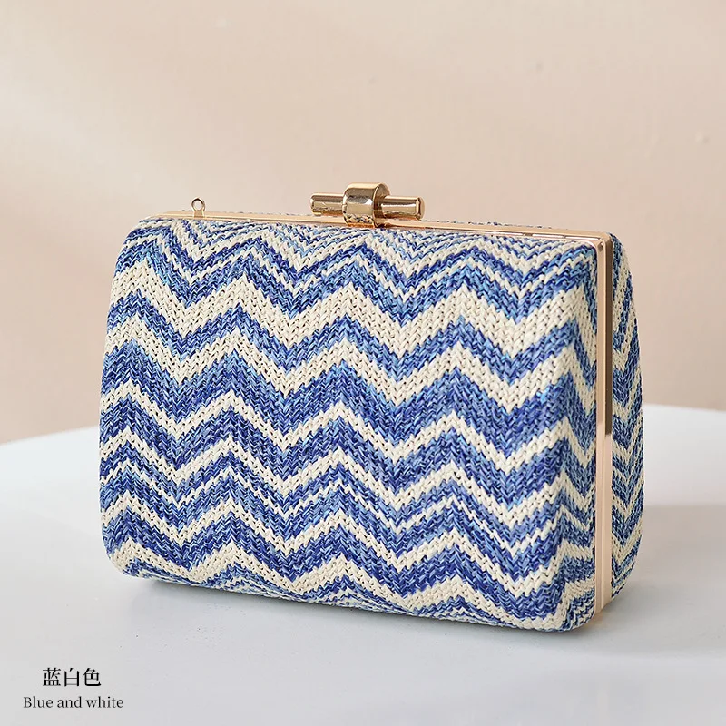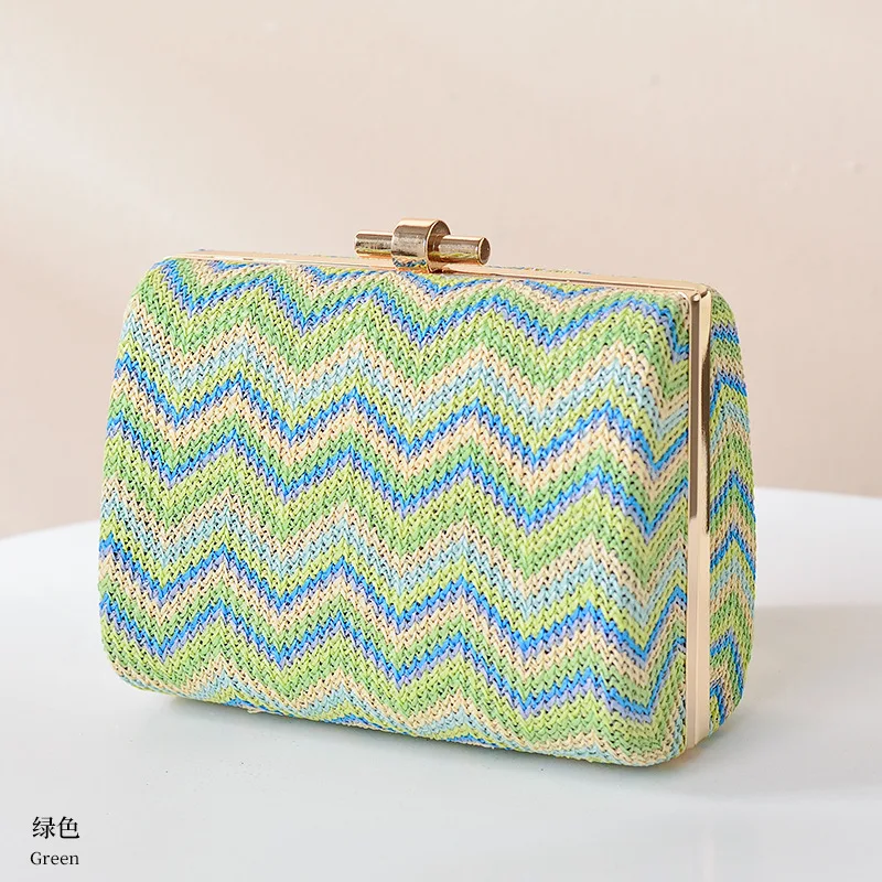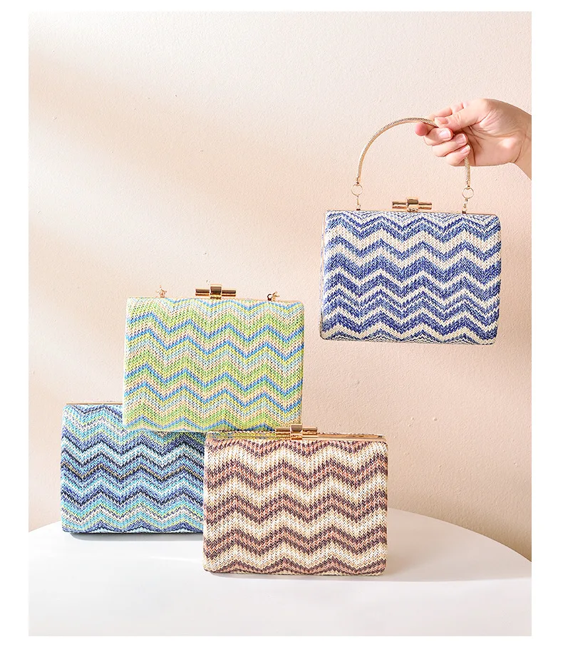 Summer Style Straw Bags for Women 2024 Boho Styke Stripe Clutches Woven Handbag Holiday Outdoor Wedding Purse Small Beach Bags