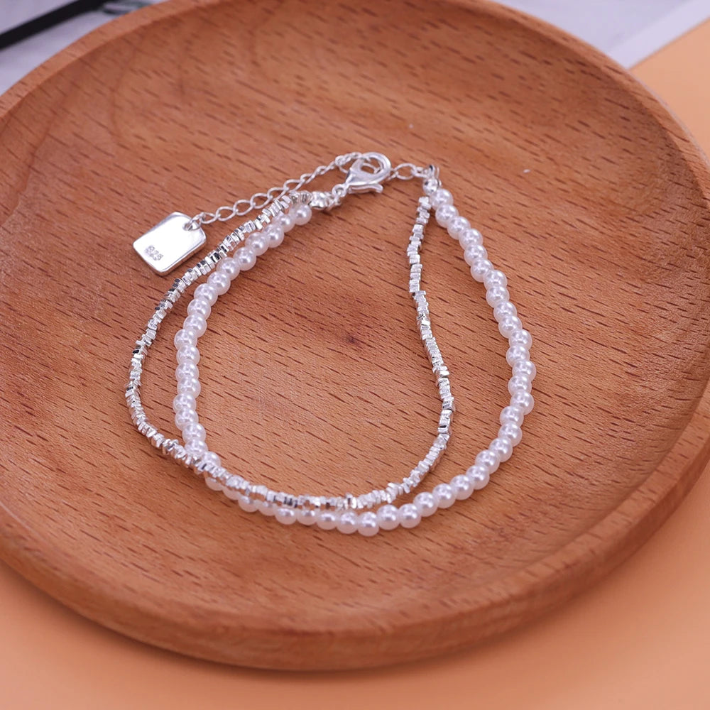 VENTFILLE 925 Sterling Silver Double Layer Pearl Bracelet for Women Girl Design Bead Korean Jewelry Dropshipping