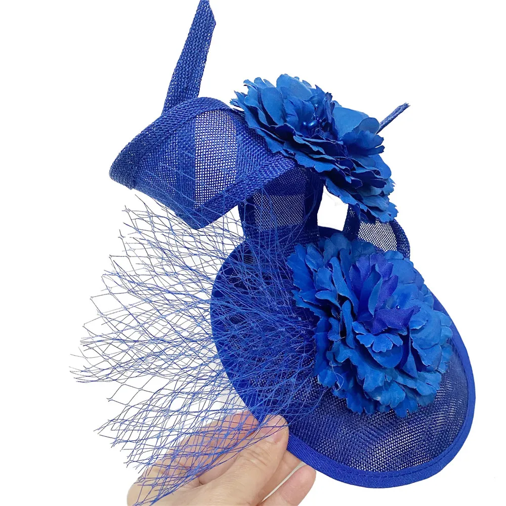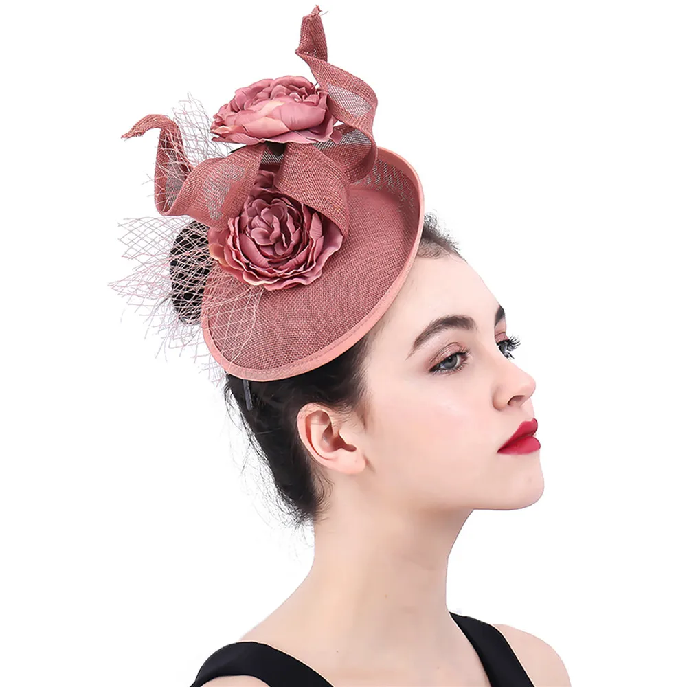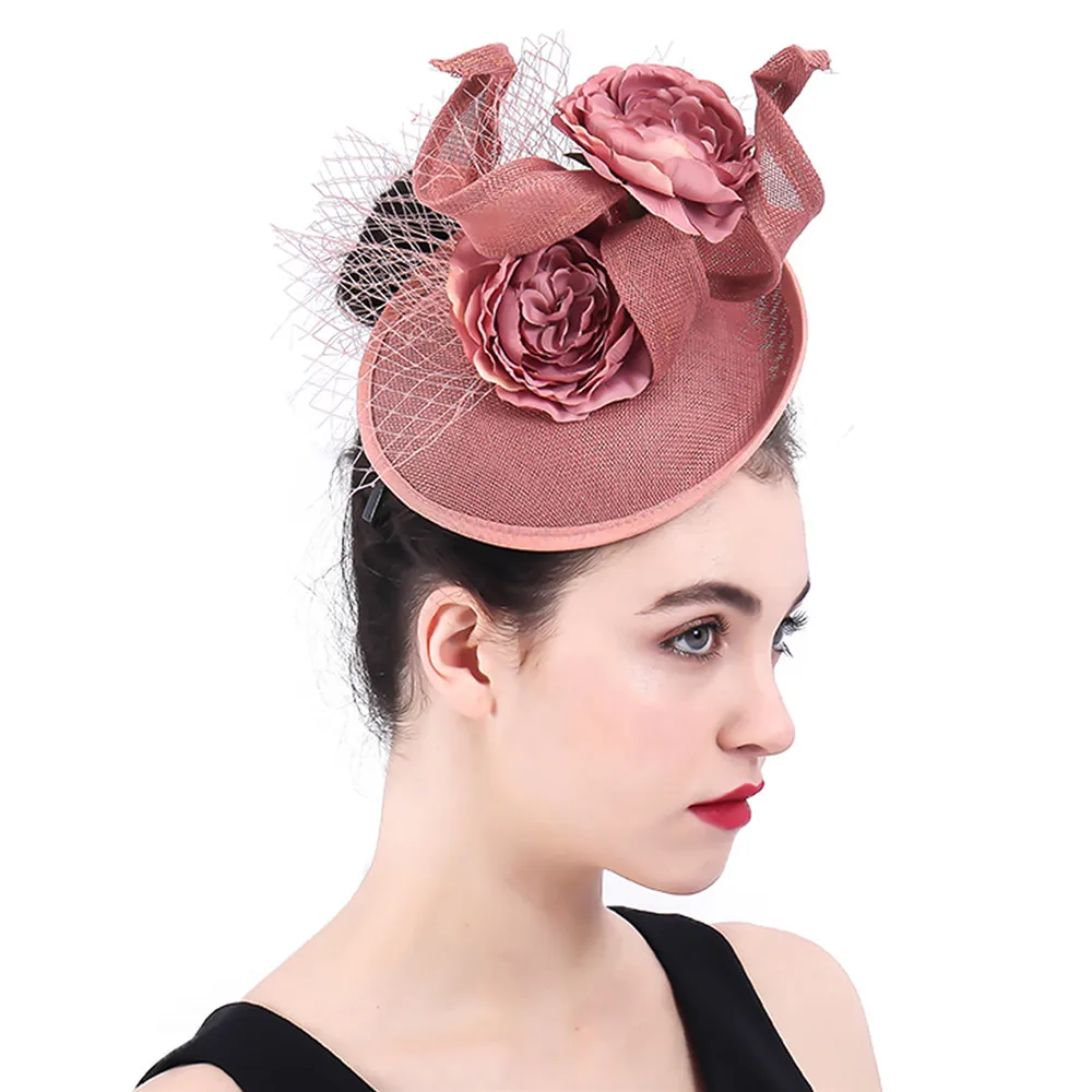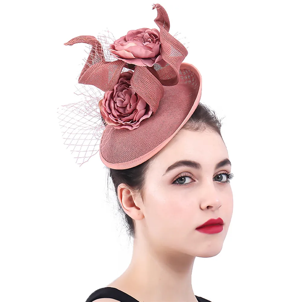 Wedding Fascinators Hot Pink Headpiece Mesh Headwear Wedding Party For Bride Hair Accessories Ladies Formal Dress Fedora Caps