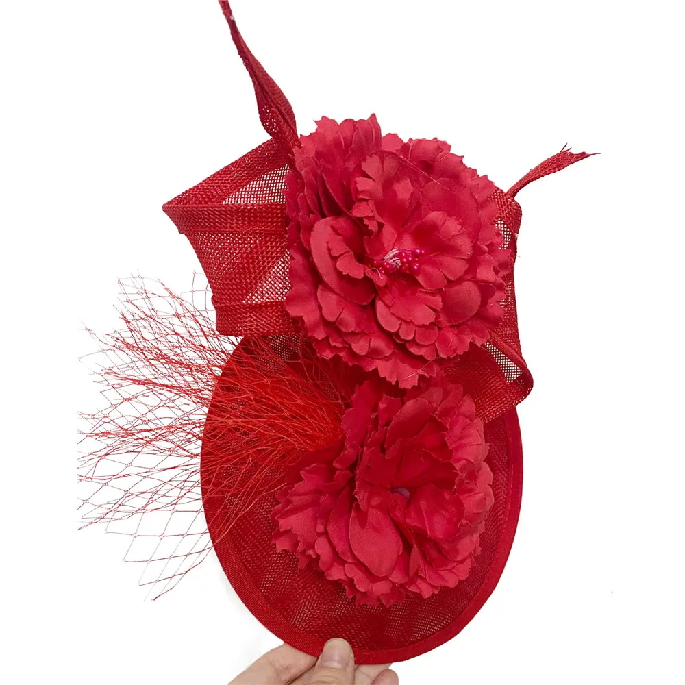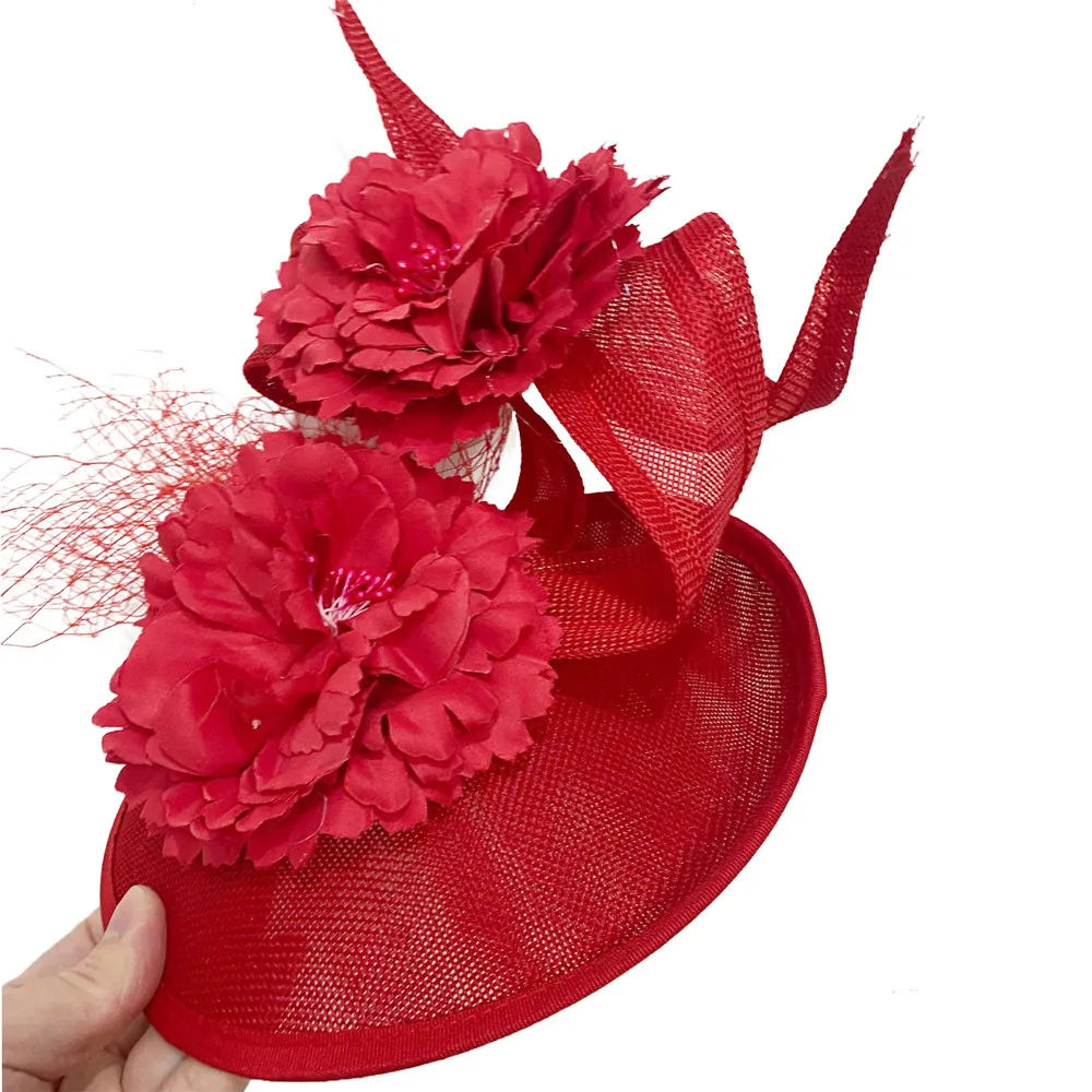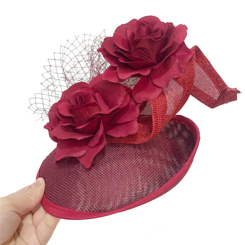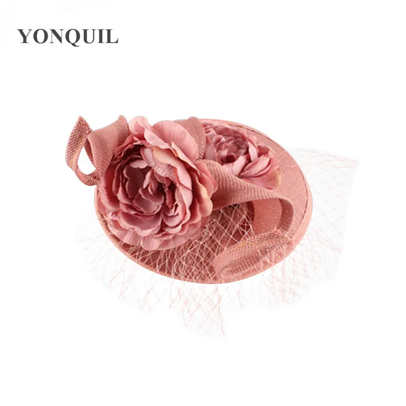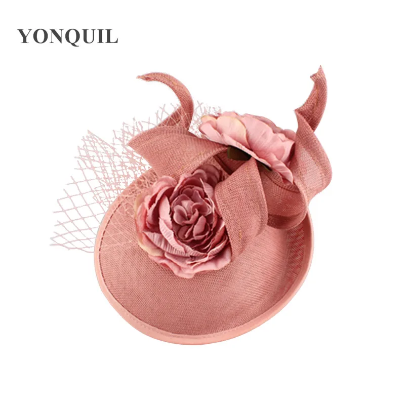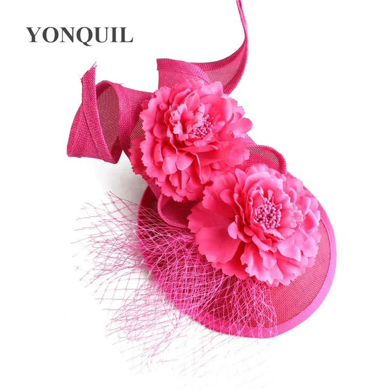 Wedding Party Hot Pink Headpiece Mesh Headwear For Bride Wedding Fascinators Hair Accessories Ladies Formal Dress Fedora Caps