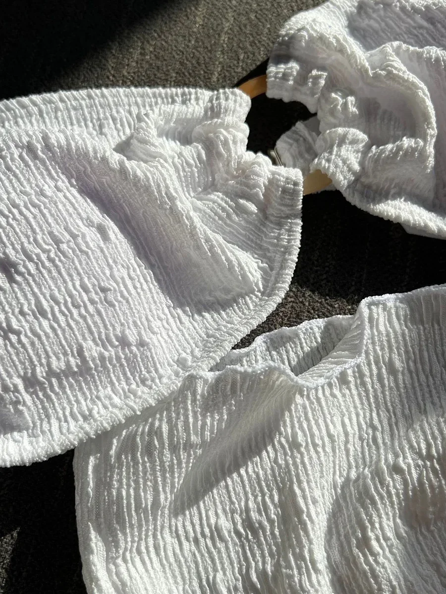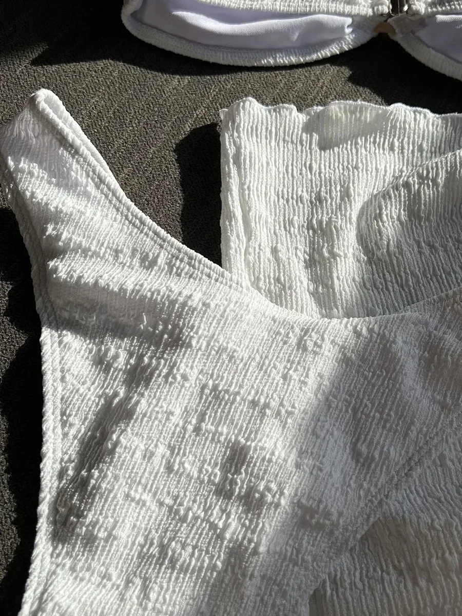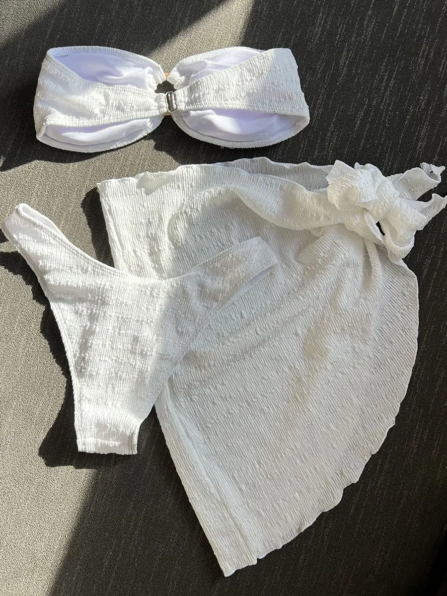 With Sarong Bandeau Strapless Wrinkled Bikini Women Swimwear Female Swimsuit Three-pieces Bikini set Bather Bathing Suit Swim