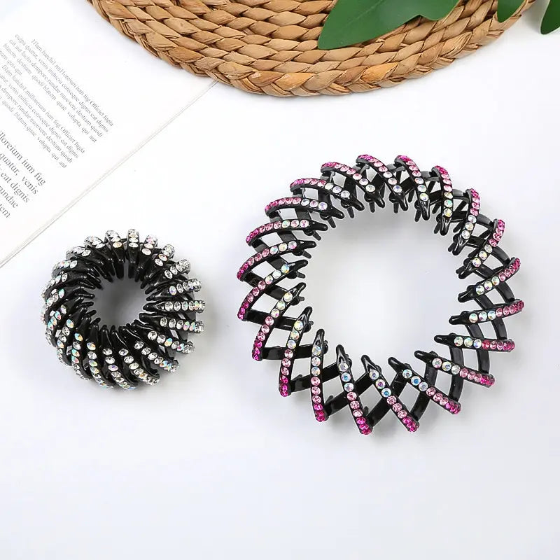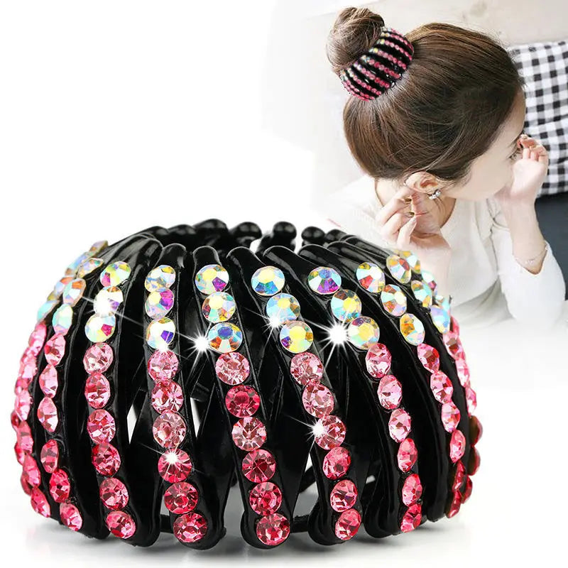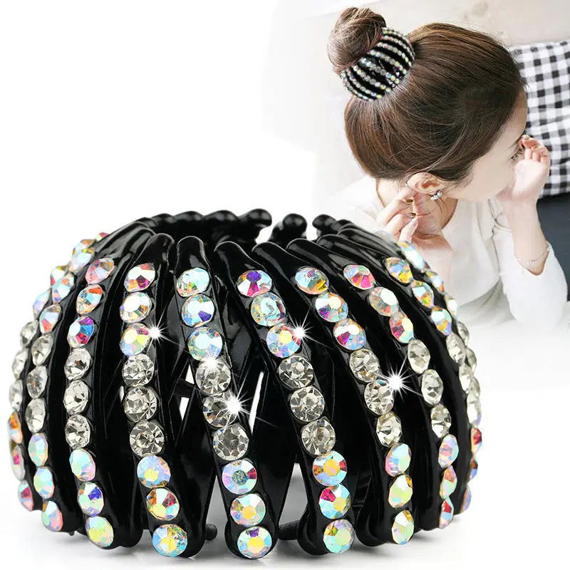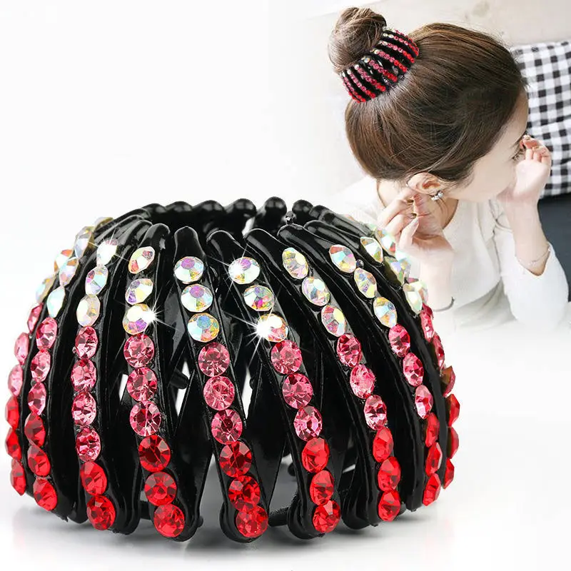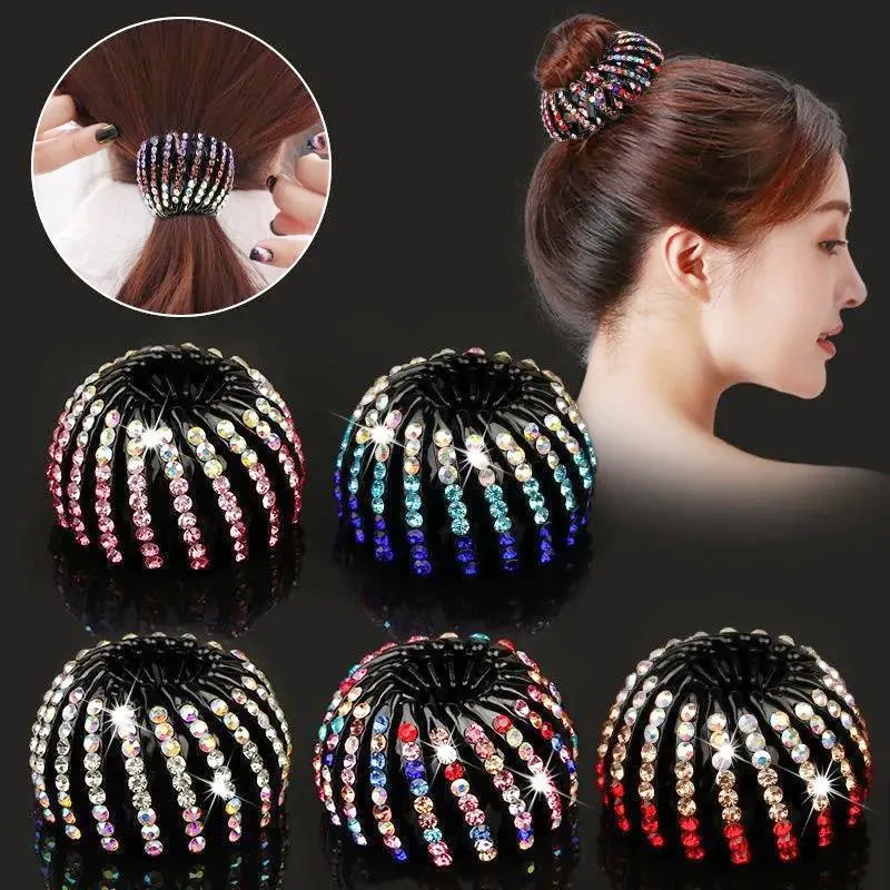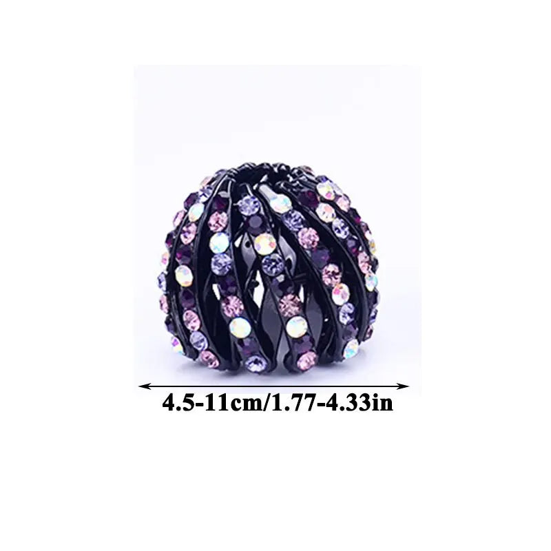 مشبك شعر نسائي على شكل كعكة من الكريستال على شكل ذيل حصان، مشبك شعر على شكل عش طائر، إكسسوارات شعر قابلة للتمدد