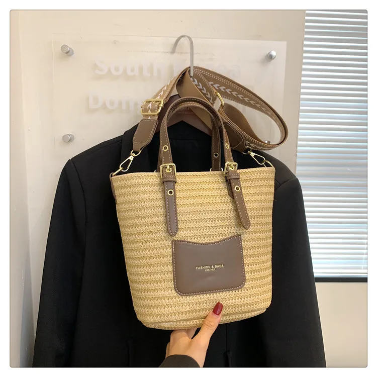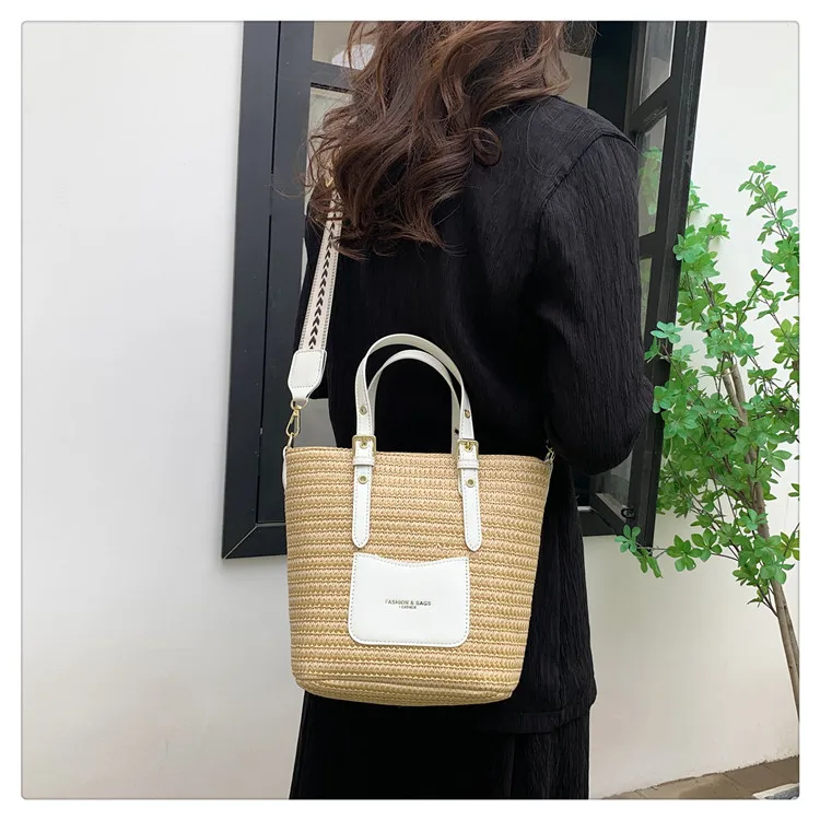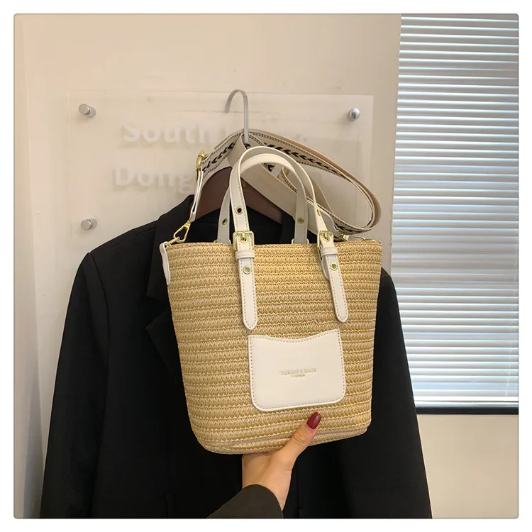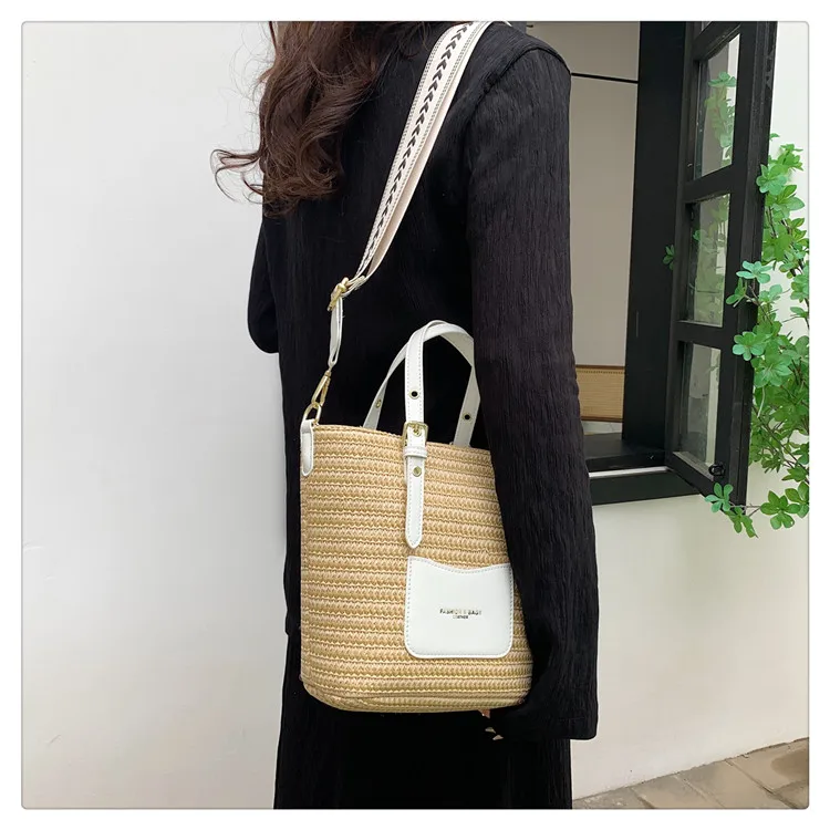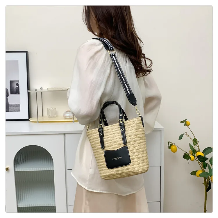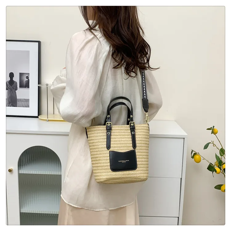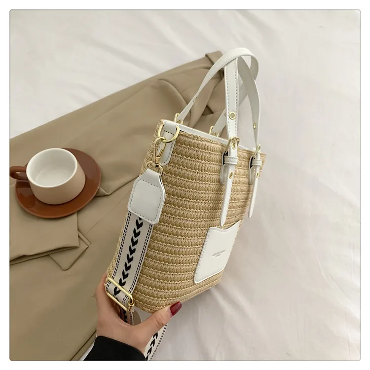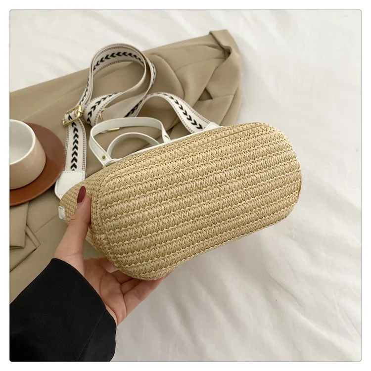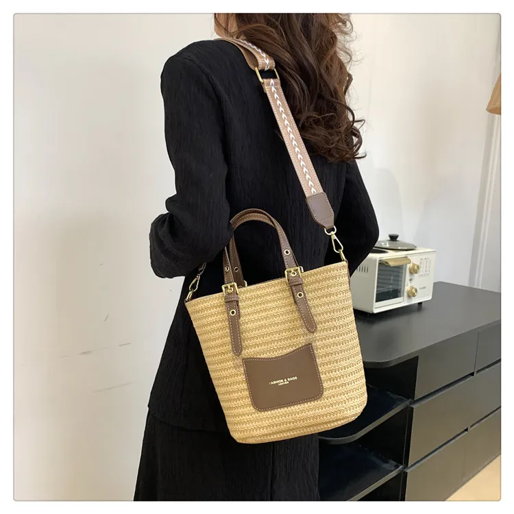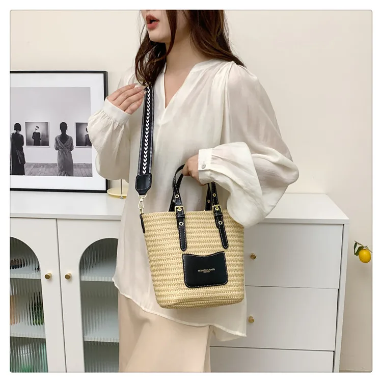 Woven Straw Shoulder Bag Female Crossbody Bags for Women 2023 Designer Bucket Bag Summer Beach Handbags Purse Travel Shopper Bag