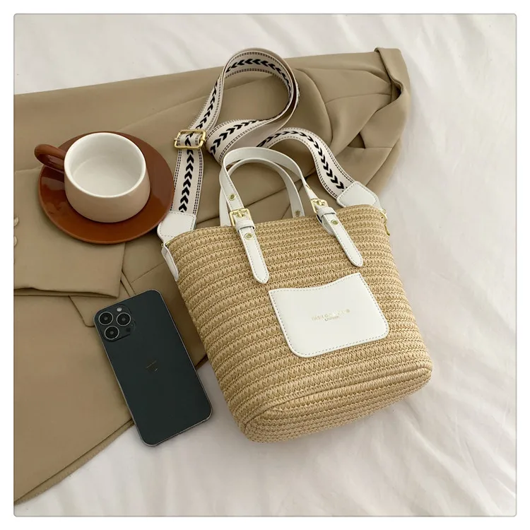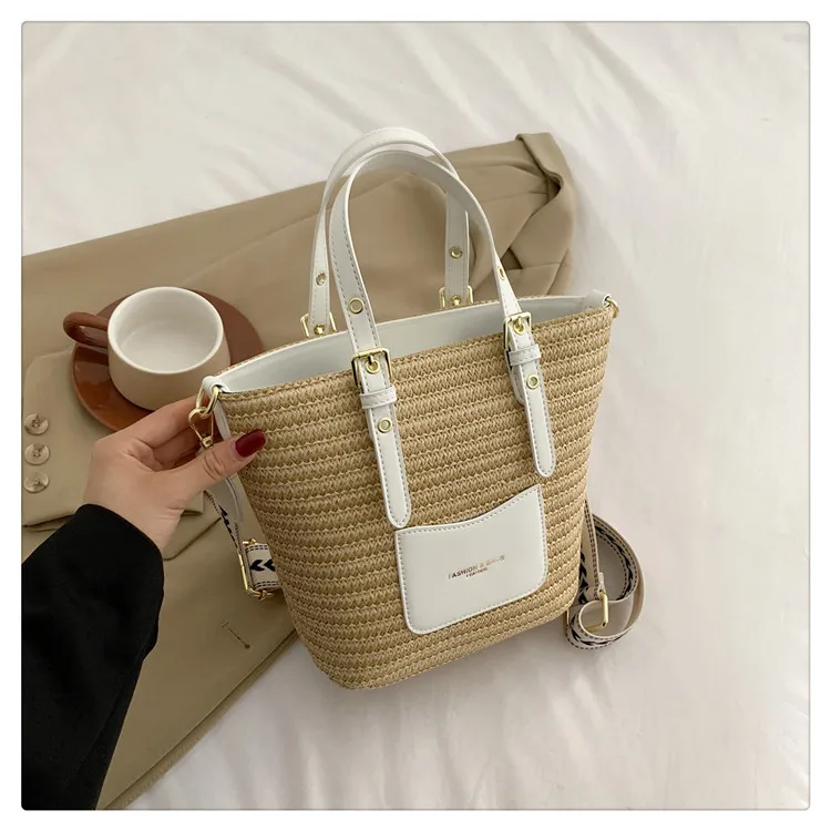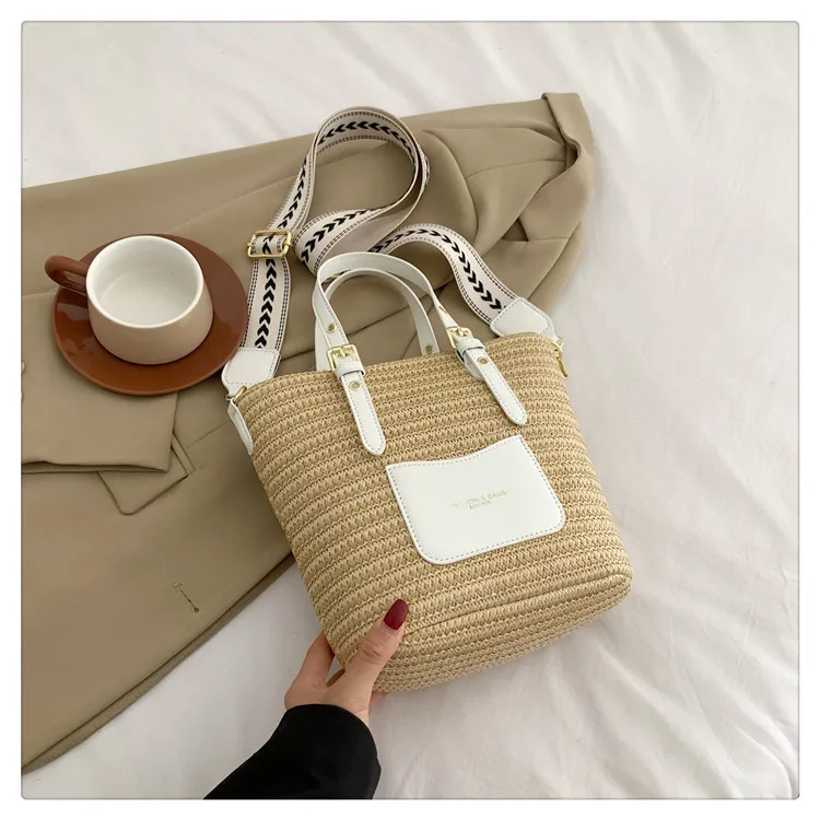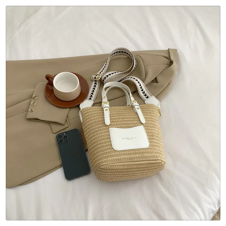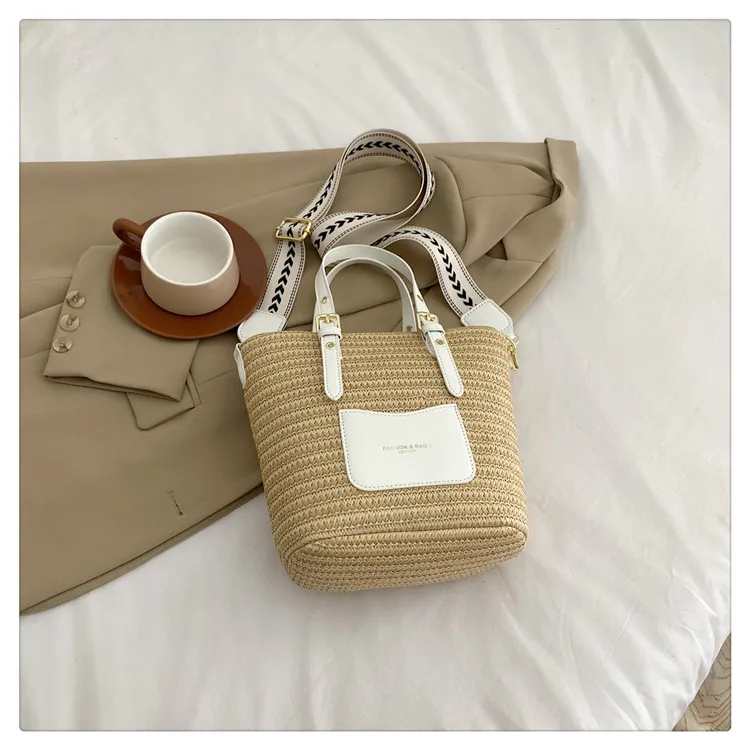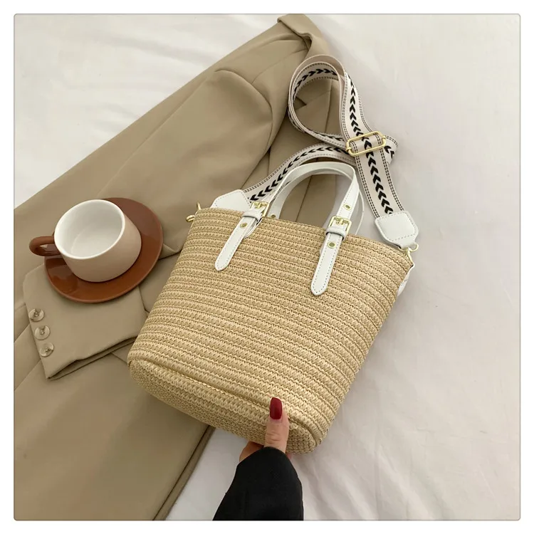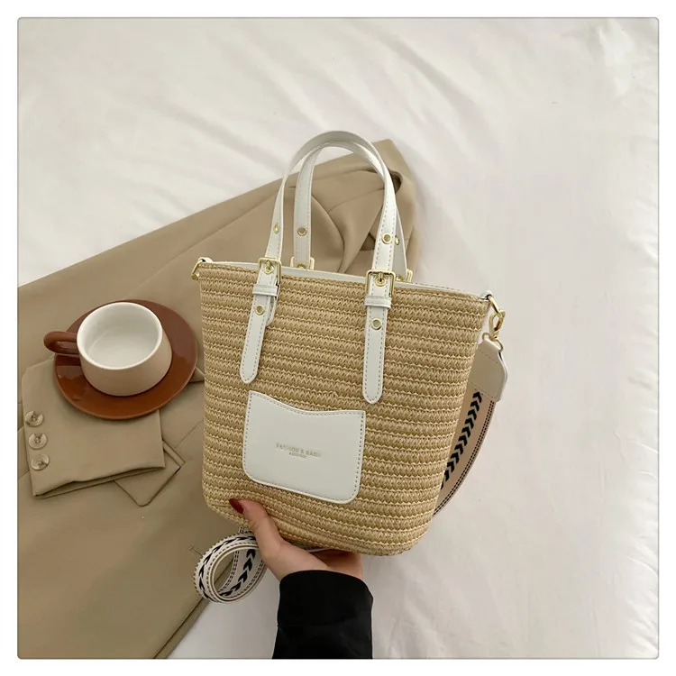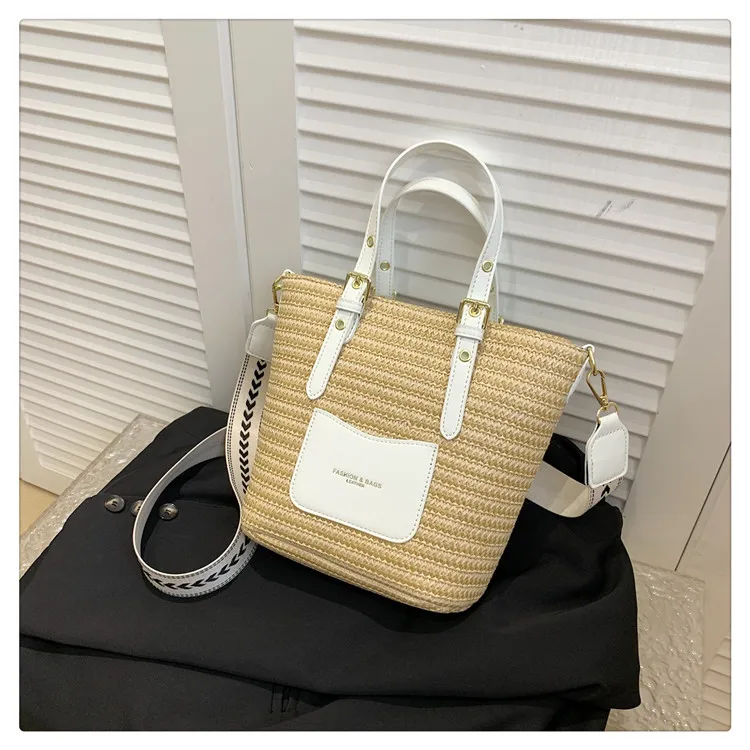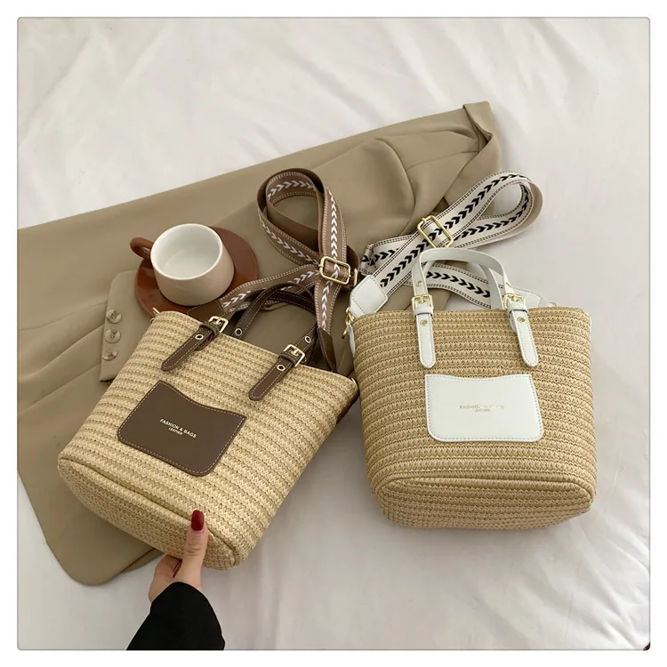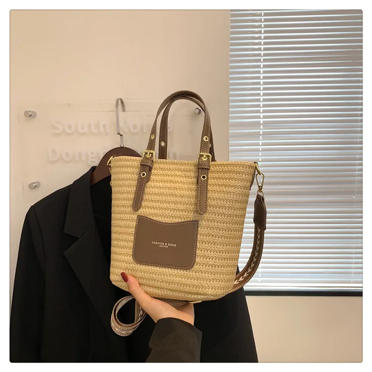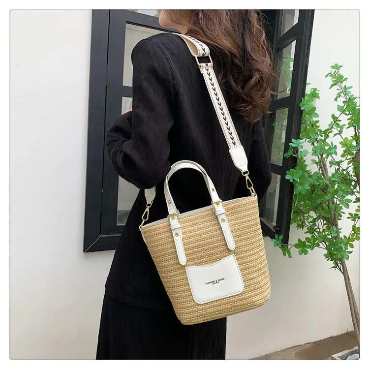 Woven Straw Shoulder Bag Female Crossbody Bags for Women 2023 Designer Bucket Bag Summer Beach Handbags Purse Travel Shopper Bag