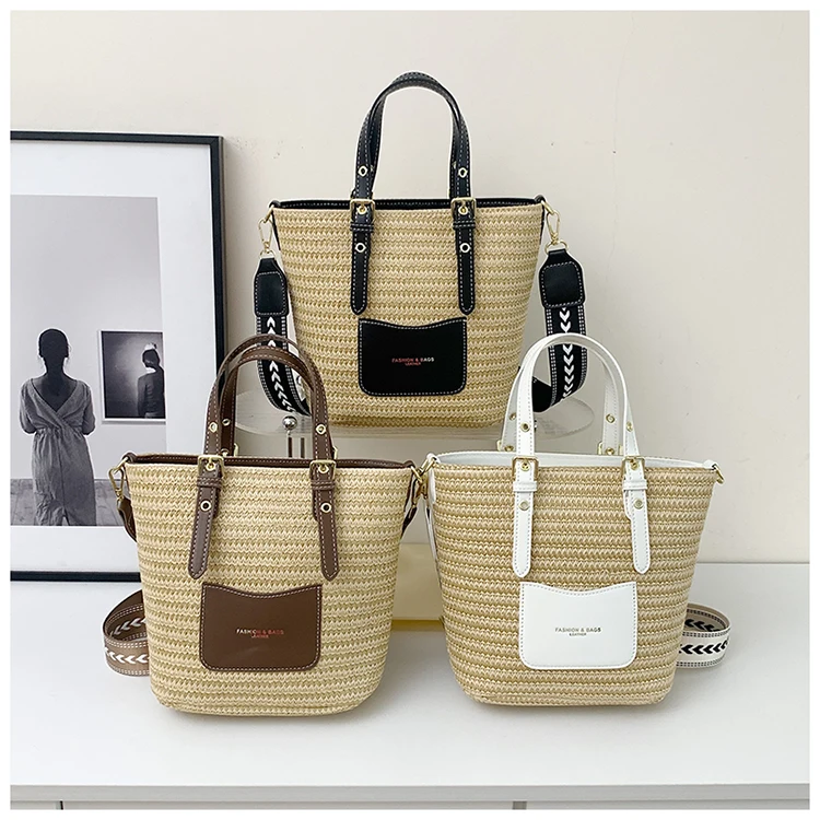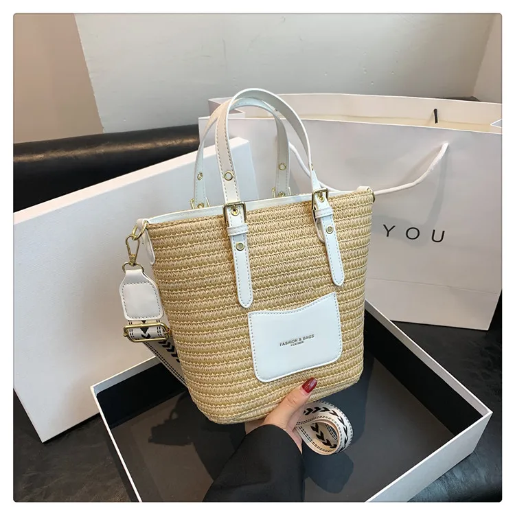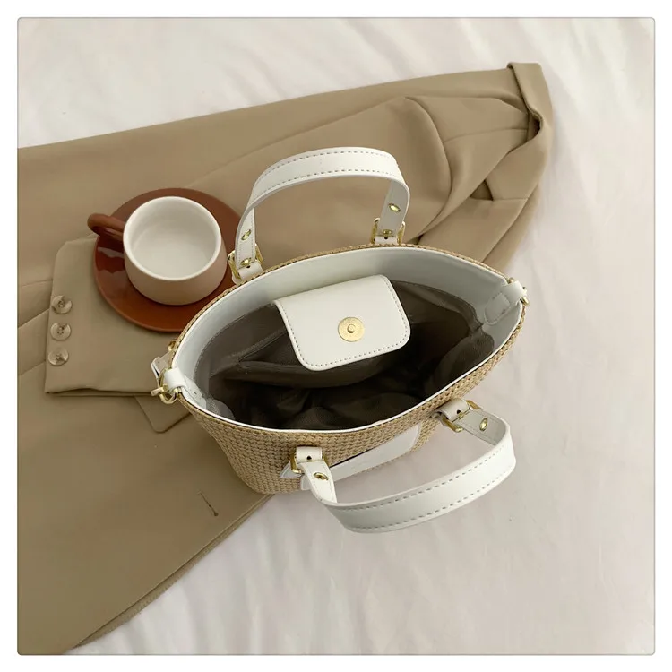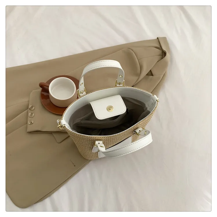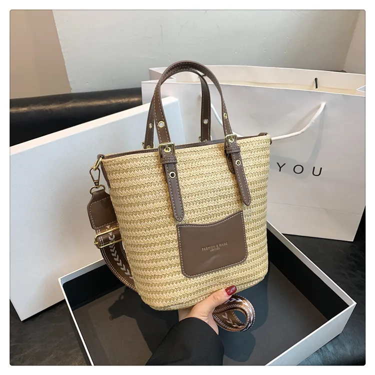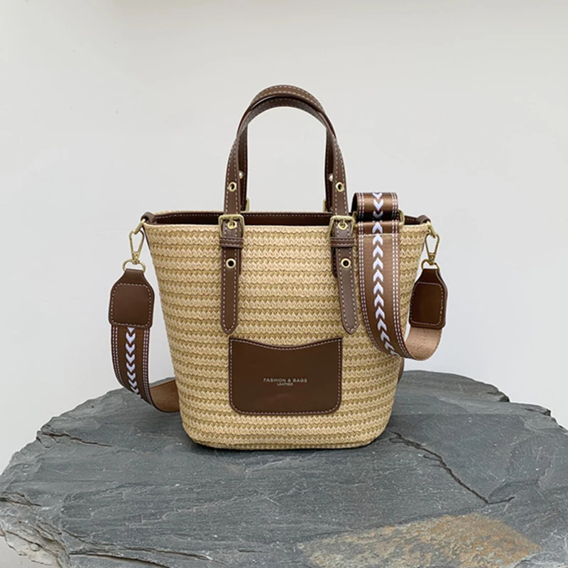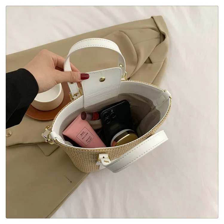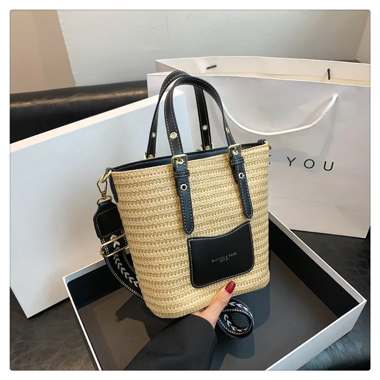 Luxury Straw Bucket Bags For Women Summer Crossbody Bags Lady Travel Purses And Handbags Female Shoulder Messenger Bag Bolsa
