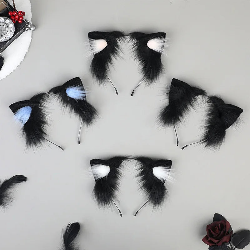 Y2k Headband for Cosplay Women Girl Plush Furry Cat Ears Headwear Accessory for Cam Girl Party Performance Hair Hoops