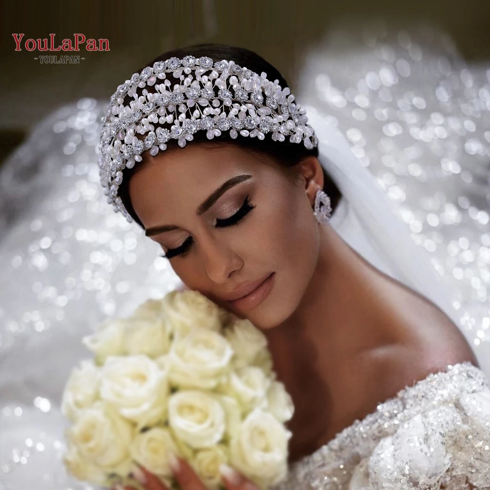 YouLaPan HP454 Silver Color Tiaras And Crowns For Wedding Bride Party Crystal Pearls Diadems Rhinestone Headband Fashion Accessories