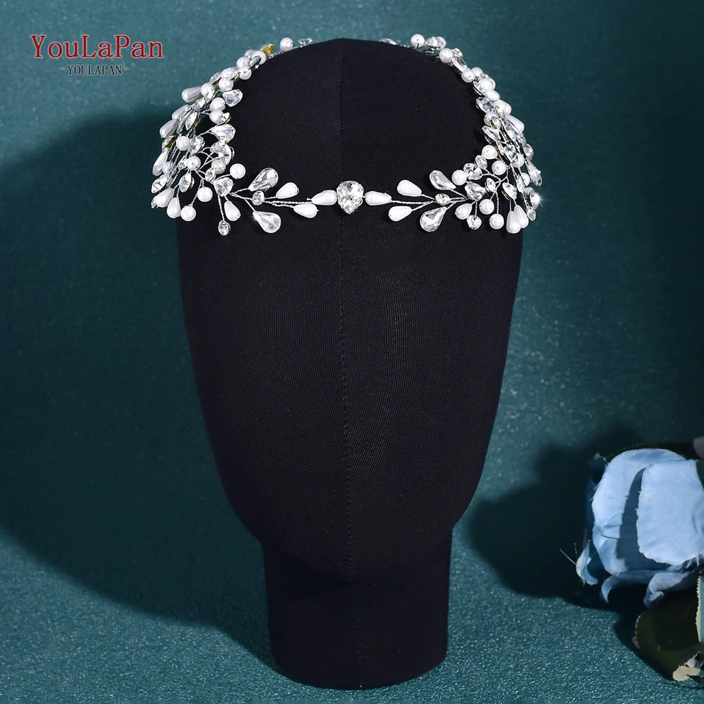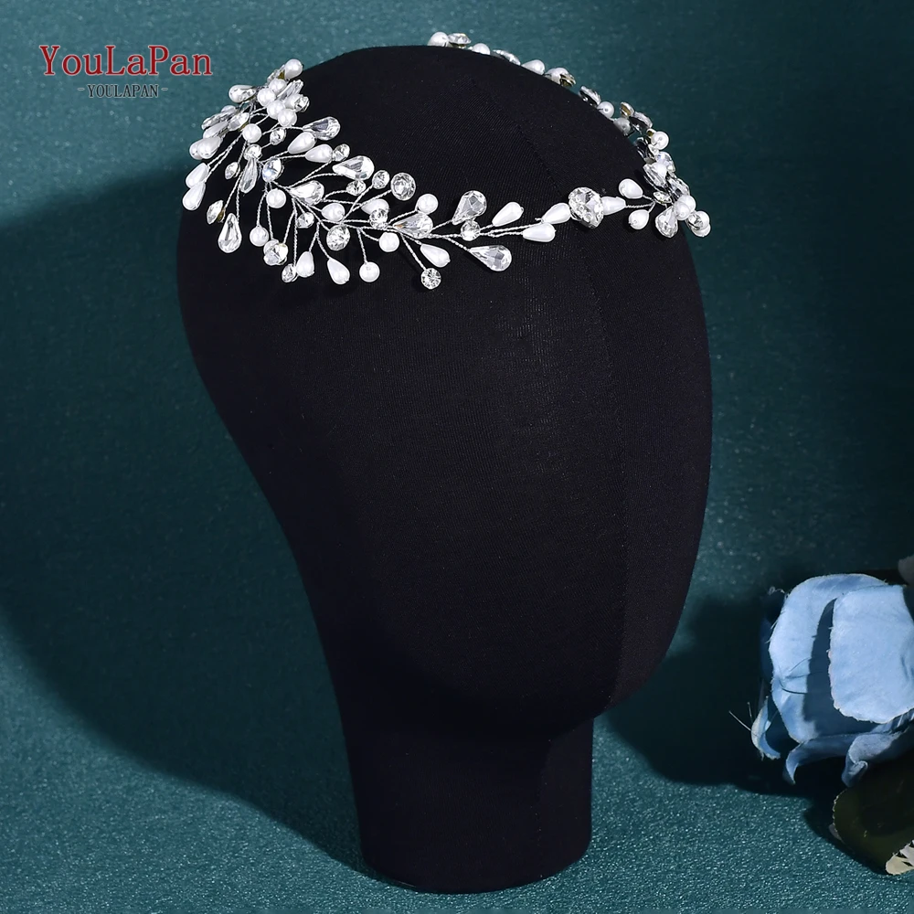 YouLaPan Rhinestone Wedding Forehead Headband Pearl Women Headdress Bridal Head Jewelry Tiara Bridesmaid Hair Accessories HP835
