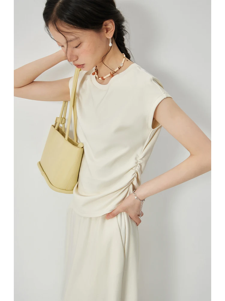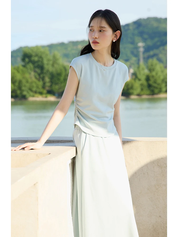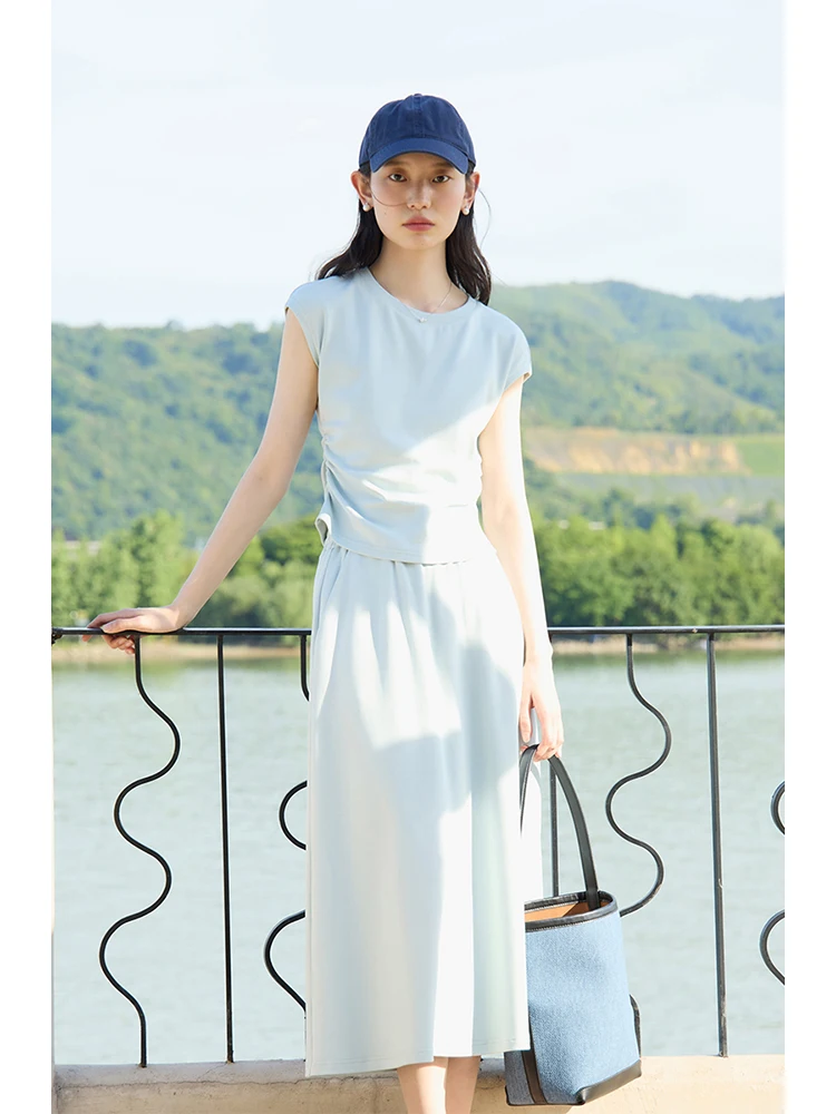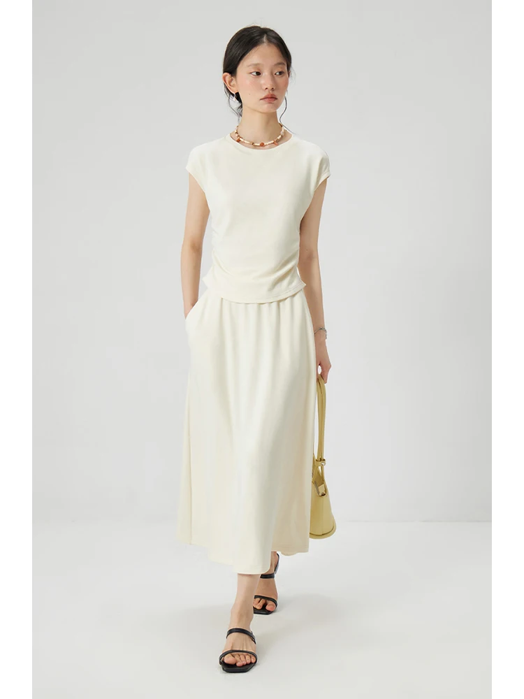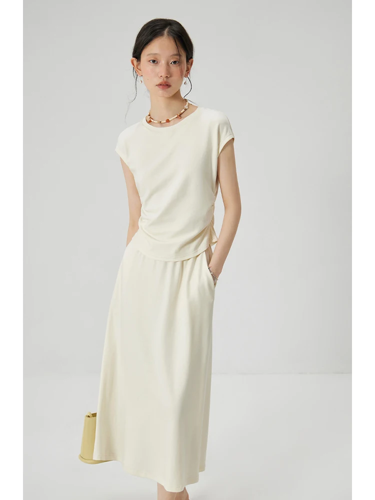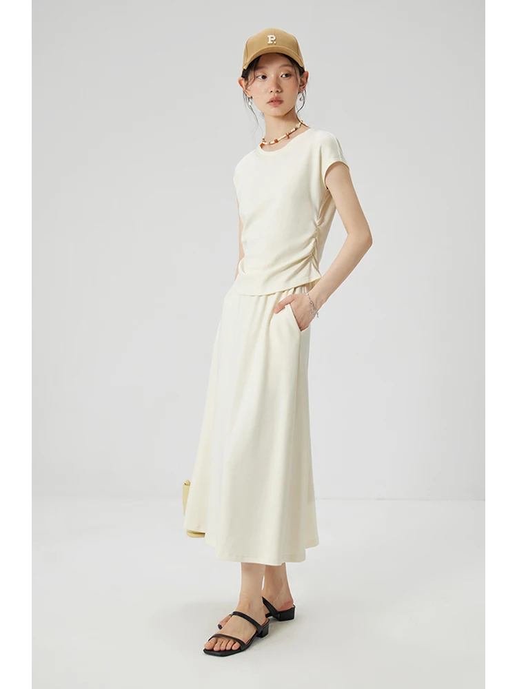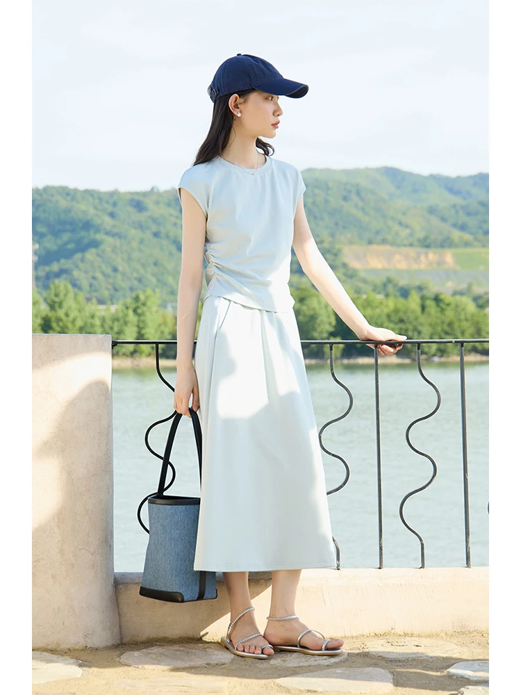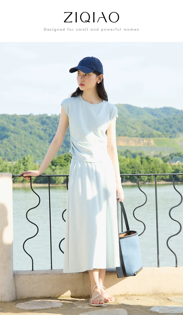 طقم تنورة تي شيرت بأكمام قصيرة من ZIQIAO Petite Relaxing للنساء صيف 2024 ملابس علوية نسائية جديدة لتنحيف الجسم