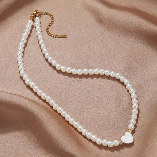 New Trendy Stainless Steel 26 Letter Shell Heart Imitation Pearls Necklace Women Handmade 6mm Stone Beaded Choker Jewelry Gift