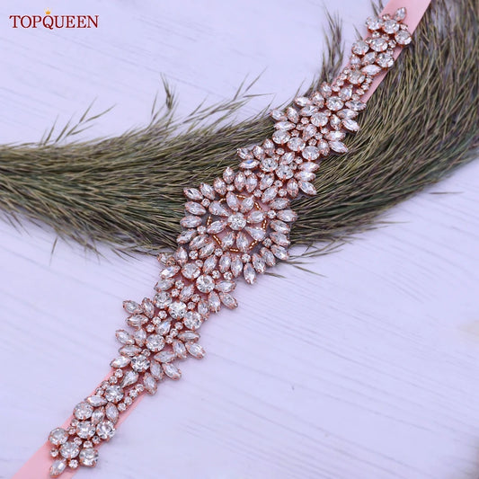 TOPQUEEN S319-RG Rose Gold Belt Full Rhinestone Ladies Wedding Party Stones Sash Women Dress Bride Accessories Gown Applique