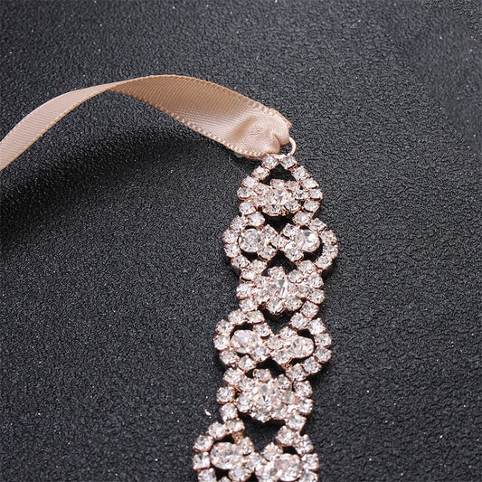 Classic Rhinestone Bridal Belt Rose Gold Color Crystal Sash Belt Wedding Party Prom Dress Accessories for Women Bridesmaid Gift
