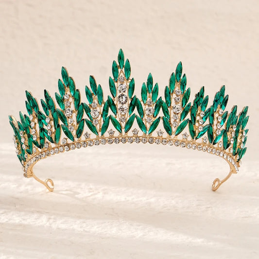 Green Wedding Bridal Pageant Crystal Rhinestone Tiaras Crown Ladies Party Luxury Princess Women Headpiece Hair Accessorie