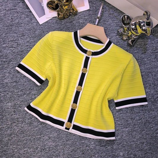 2024 Summer High Quality Sheath Knitting 2PCs Skirt Sets Short Length Women Elegant Lady Twin Suits