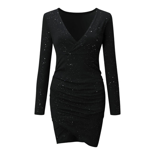 Plus Size Dresses For Curvy Women Long Sleeve V Neck Glitter Sparkly Sequin Cross Ruched Mini Dresses Evening Party Dresses
