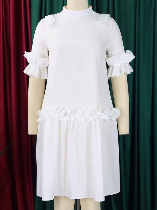 FairyShely Solid 2025 Verge Short Sleeve Plus Size Dress Women Large Loose Big Folds Dresses Lady Summer Party Tight Curvy Dress