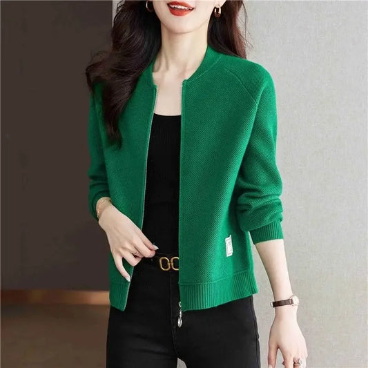 Zip-up Knitted Bomber Jacket for Women Plain Fashion Elegant Modern Korean Reviews Clothes Baseball Aviator Coat Woman Vintage