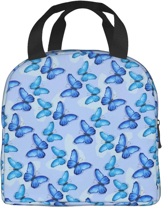 Butterfly Lunch Box for Girls Women Thremal Blue Picnic lunch Bag for School Office Work Insulated Washable Reusable Washable